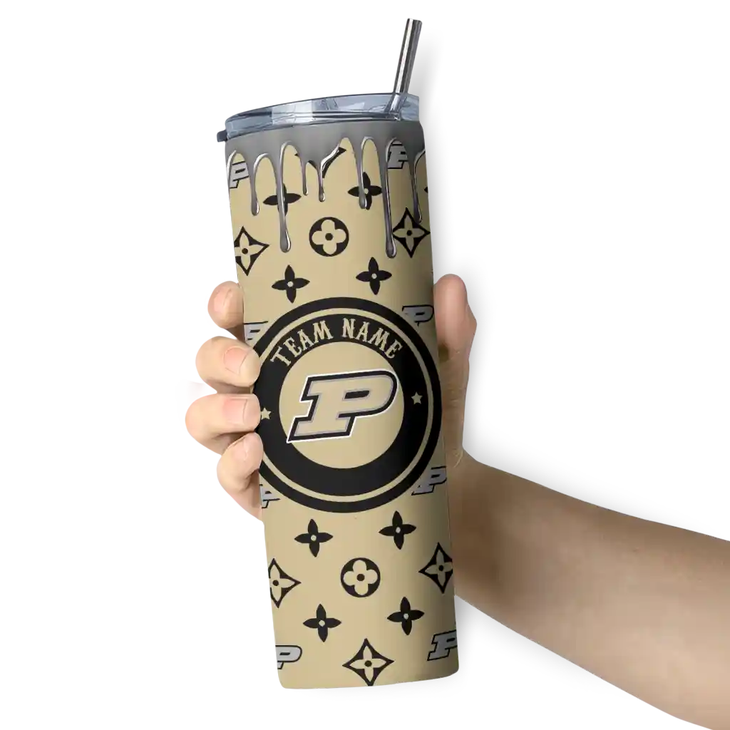 The Custom Purdue Boilermakers Camo Texture Gold Skinny Tumbler tumbler is the perfect way to stay refreshed while showing off your pride for Purdue Boilermakers. With its double-wall insulation, your drinks stay at the right temperature for hours, whether you're enjoying a hot coffee or keeping your iced drink cold. What's inside? You’ll find 1 stainless steel tumbler, 1 clear lid, and 1 removable straw. It's the perfect blend of function and fan spirit! Ergonomically designed for comfort, made from durable stainless steel, and insulated to maintain your drink’s temperature, this tumbler is a must-have for any dedicated NCAA fan.