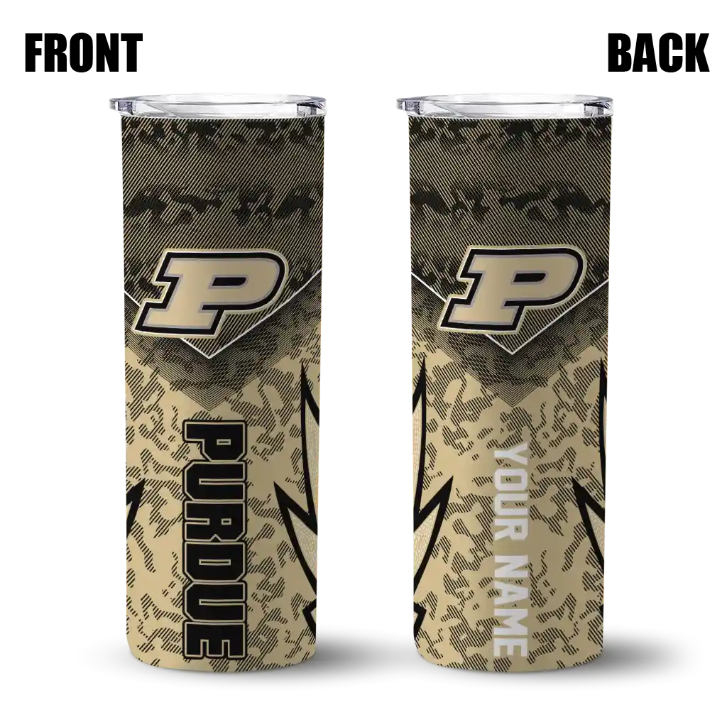 The Personalized Purdue Boilermakers Spiral Burst Print Gold Skinny Tumbler tumbler is the perfect way to stay refreshed while showing off your pride for Purdue Boilermakers. With its double-wall insulation, your drinks stay at the right temperature for hours, whether you're enjoying a hot coffee or keeping your iced drink cold. What's inside? You’ll find 1 stainless steel tumbler, 1 clear lid, and 1 removable straw. It's the perfect blend of function and fan spirit! Ergonomically designed for comfort, made from durable stainless steel, and insulated to maintain your drink’s temperature, this tumbler is a must-have for any dedicated NCAA fan.