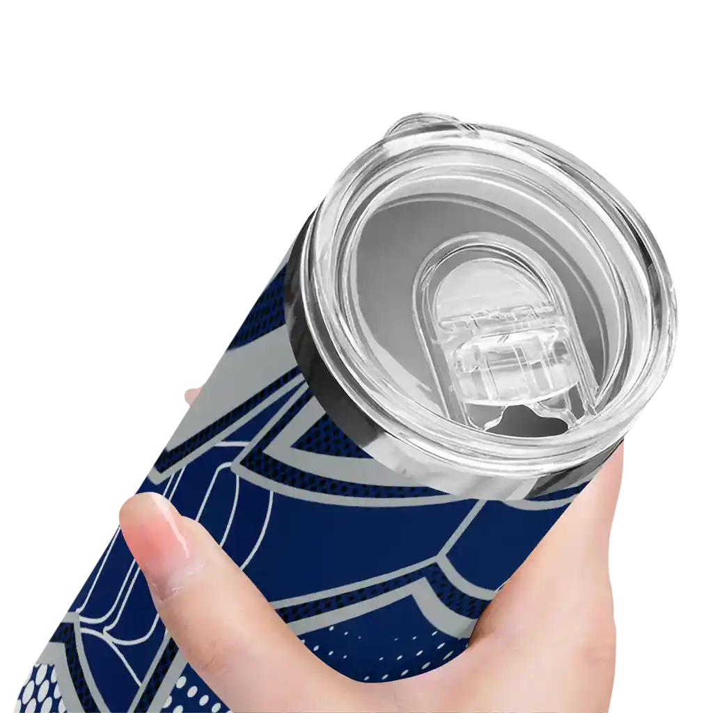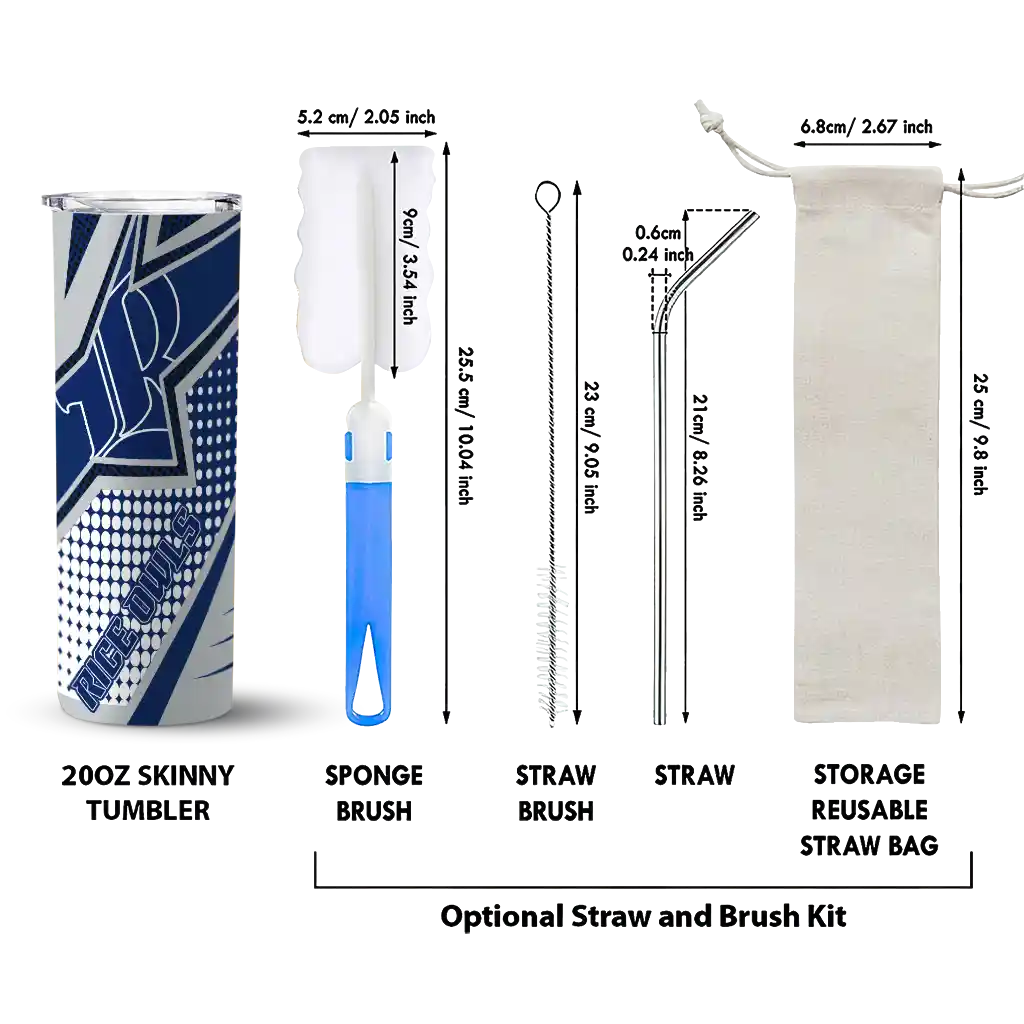 The Customized Rice Owls Web Stripes Navy Blue White Skinny Tumbler tumbler is the perfect way to stay refreshed while showing off your pride for Rice Owls. With its double-wall insulation, your drinks stay at the right temperature for hours, whether you're enjoying a hot coffee or keeping your iced drink cold. What's inside? You’ll find 1 stainless steel tumbler, 1 clear lid, and 1 removable straw. It's the perfect blend of function and fan spirit! Ergonomically designed for comfort, made from durable stainless steel, and insulated to maintain your drink’s temperature, this tumbler is a must-have for any dedicated NCAA fan.