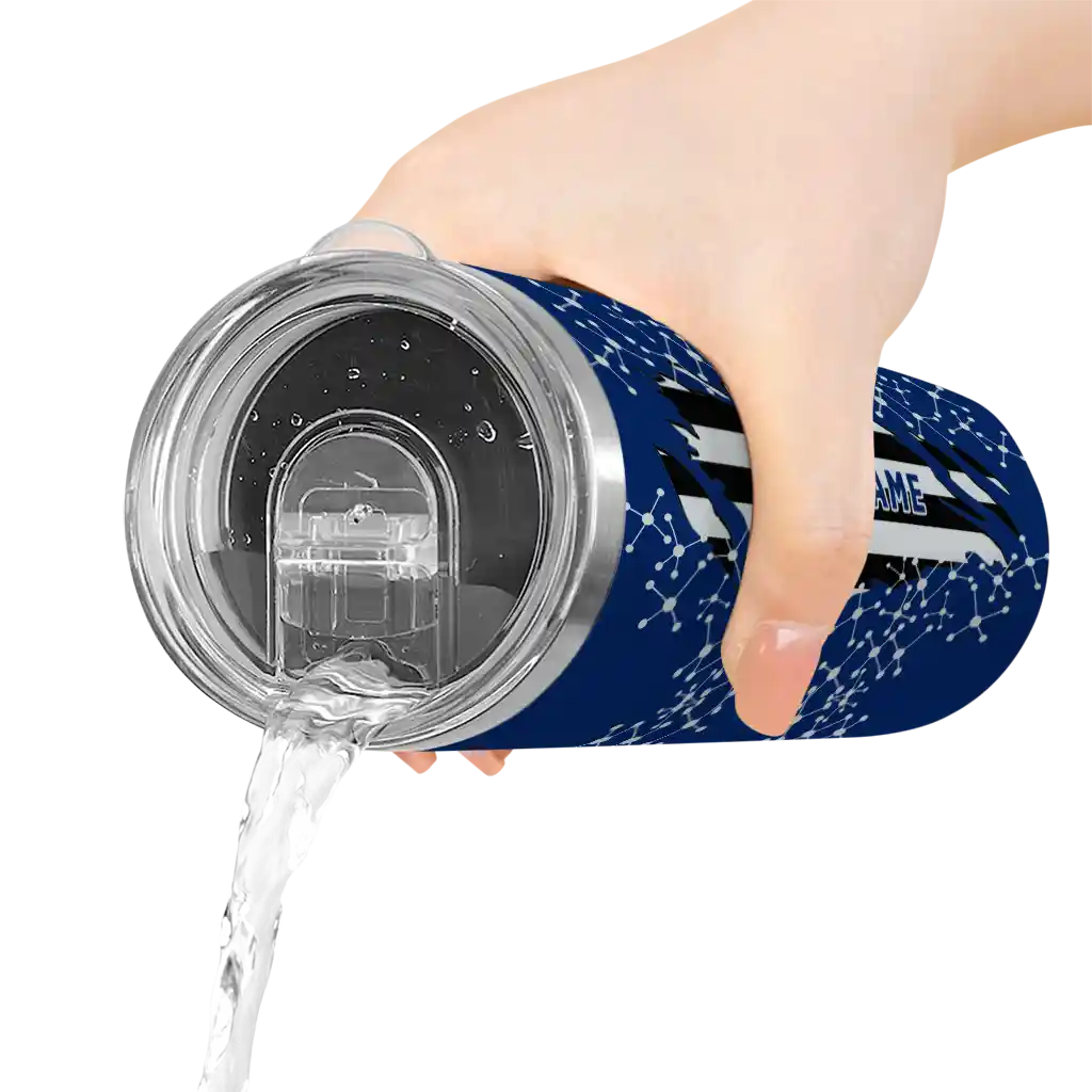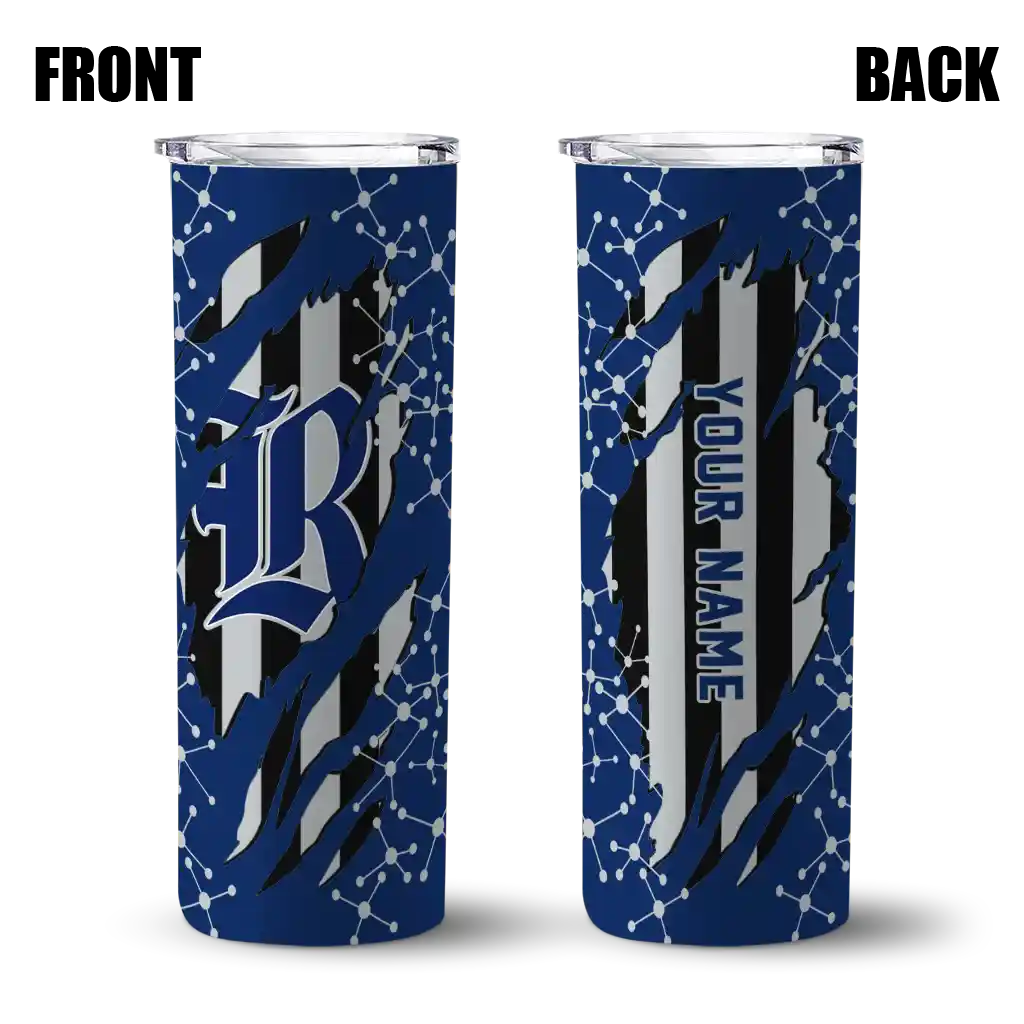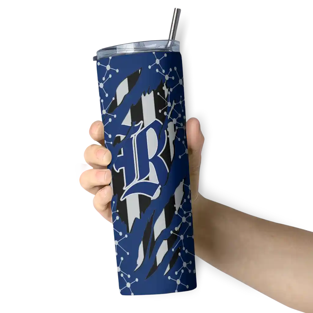 The Customized Rice Owls Helmet Clash Navy Blue Skinny Tumbler tumbler is the perfect way to stay refreshed while showing off your pride for Rice Owls. With its double-wall insulation, your drinks stay at the right temperature for hours, whether you're enjoying a hot coffee or keeping your iced drink cold. What's inside? You’ll find 1 stainless steel tumbler, 1 clear lid, and 1 removable straw. It's the perfect blend of function and fan spirit! Ergonomically designed for comfort, made from durable stainless steel, and insulated to maintain your drink’s temperature, this tumbler is a must-have for any dedicated NCAA fan.