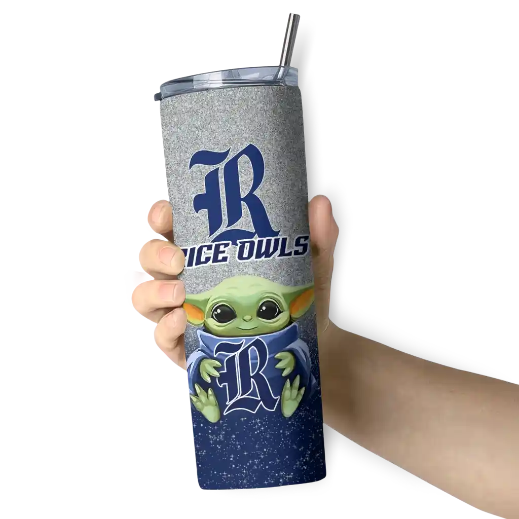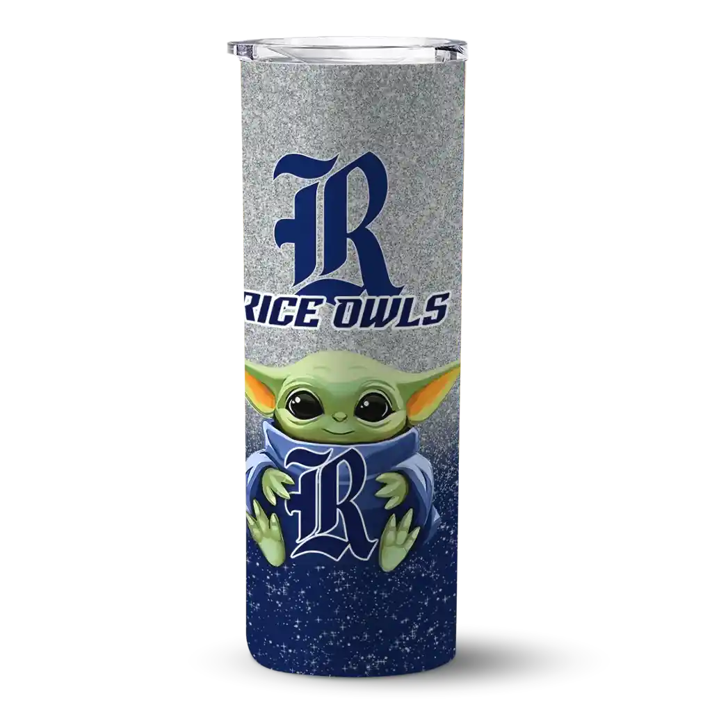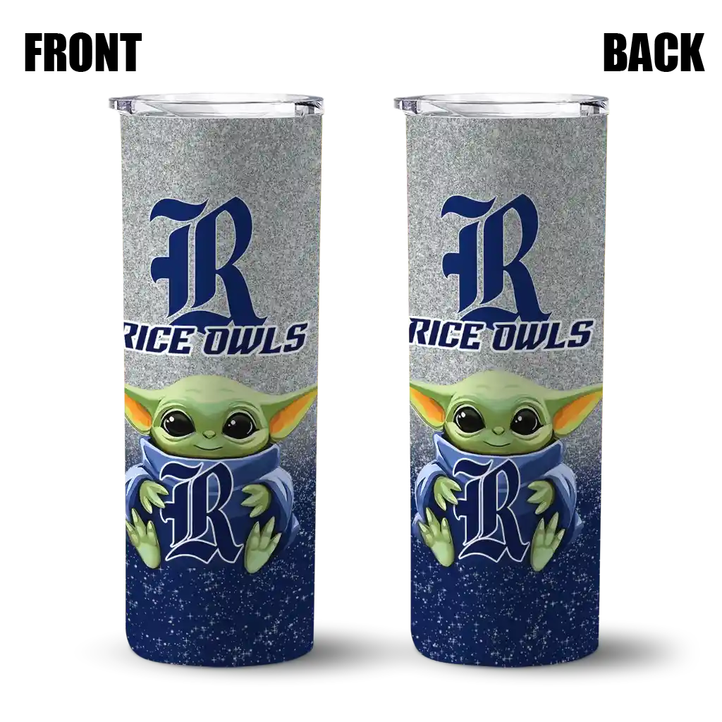 The Rice Owls Yoda Smile Navy Blue Skinny Tumbler tumbler is the perfect way to stay refreshed while showing off your pride for Rice Owls. With its double-wall insulation, your drinks stay at the right temperature for hours, whether you're enjoying a hot coffee or keeping your iced drink cold. What's inside? You’ll find 1 stainless steel tumbler, 1 clear lid, and 1 removable straw. It's the perfect blend of function and fan spirit! Ergonomically designed for comfort, made from durable stainless steel, and insulated to maintain your drink’s temperature, this tumbler is a must-have for any dedicated NCAA fan.