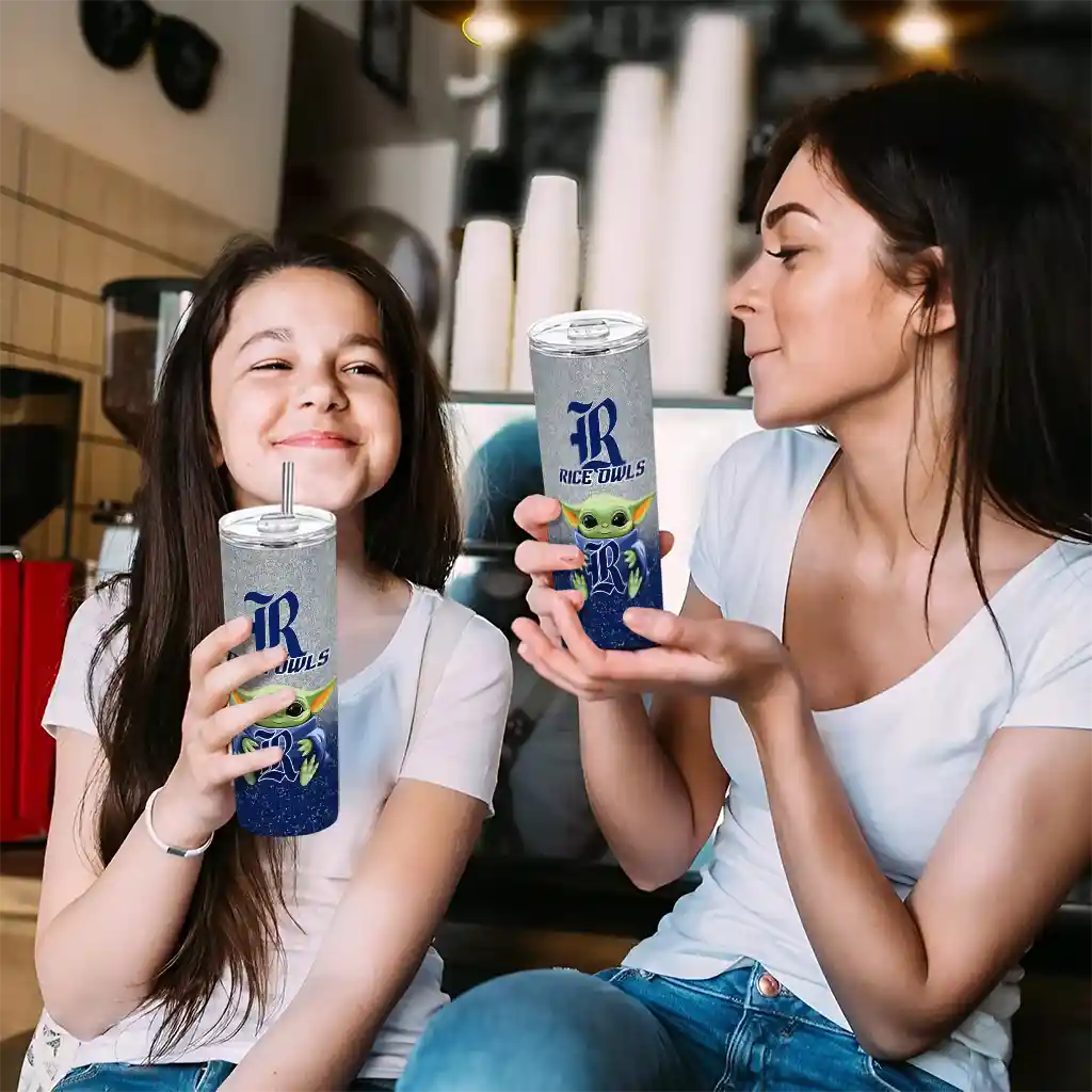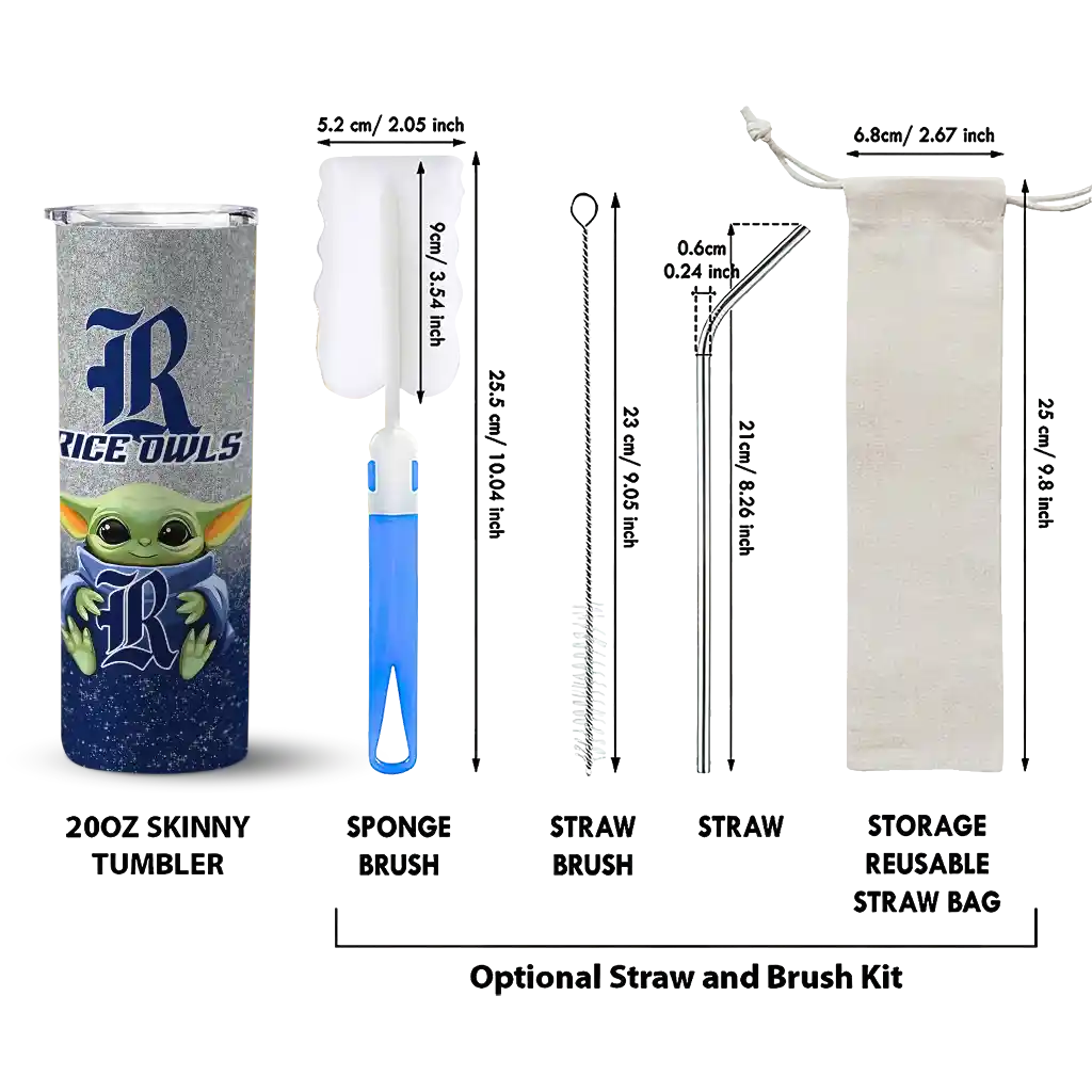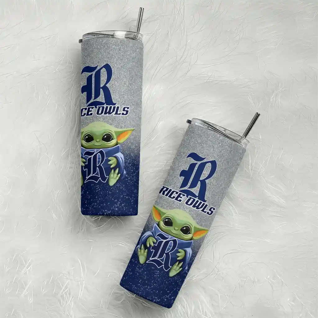 The Rice Owls Yoda Smile Navy Blue Skinny Tumbler tumbler is the perfect way to stay refreshed while showing off your pride for Rice Owls. With its double-wall insulation, your drinks stay at the right temperature for hours, whether you're enjoying a hot coffee or keeping your iced drink cold. What's inside? You’ll find 1 stainless steel tumbler, 1 clear lid, and 1 removable straw. It's the perfect blend of function and fan spirit! Ergonomically designed for comfort, made from durable stainless steel, and insulated to maintain your drink’s temperature, this tumbler is a must-have for any dedicated NCAA fan.