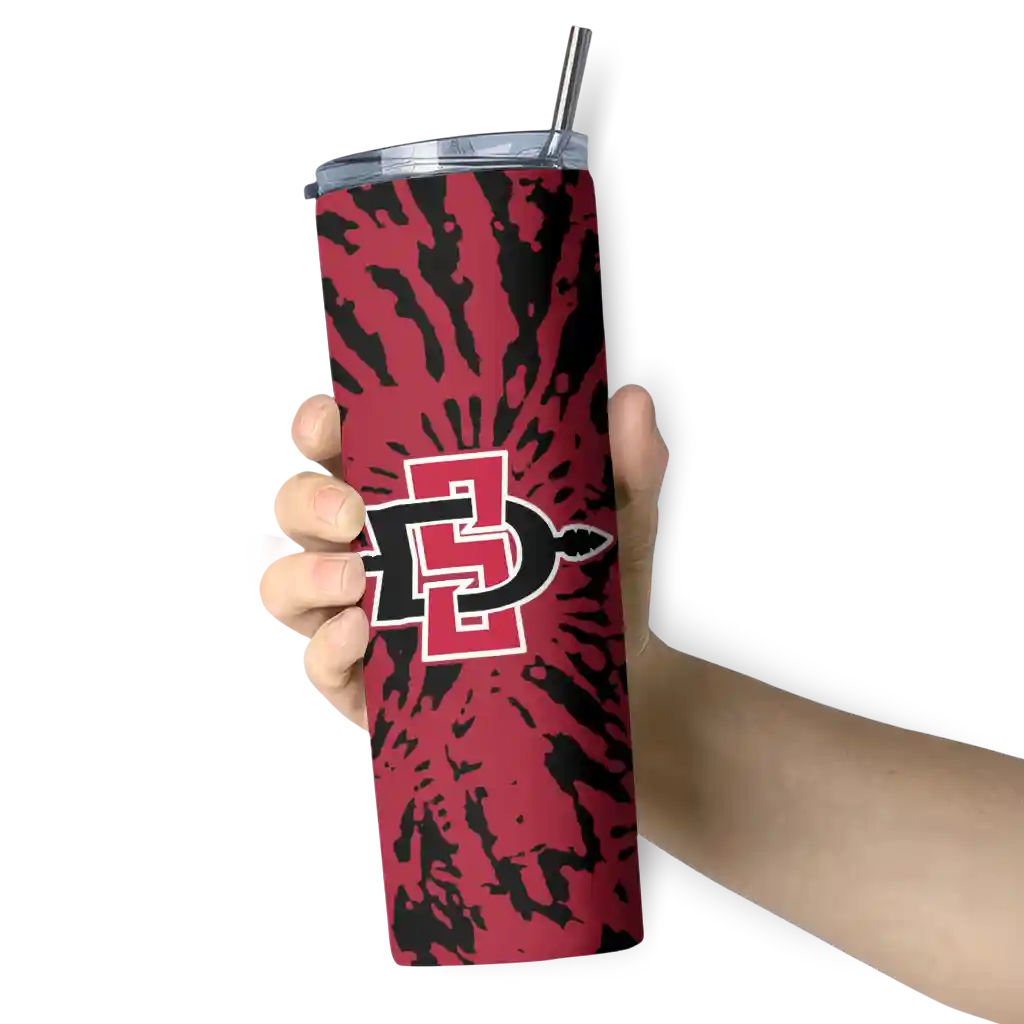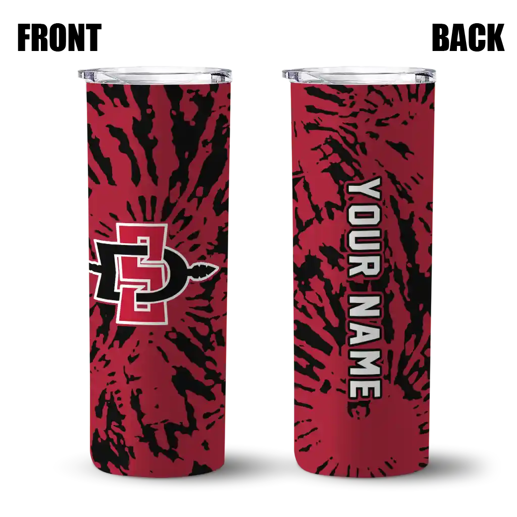 No question about it—the Personalized San Diego State Aztecs Burst Swirl Red Curved Tumbler is the ultimate way to stay refreshed while rocking your San Diego State Aztecs pride. From the stadium to your tailgate, or just chilling at home, this sleek tumbler makes sure you stay hydrated in style. What’s in the box? A stainless steel tumbler, clear lid, and removable straw—all the essentials for keeping your favorite drinks on point!