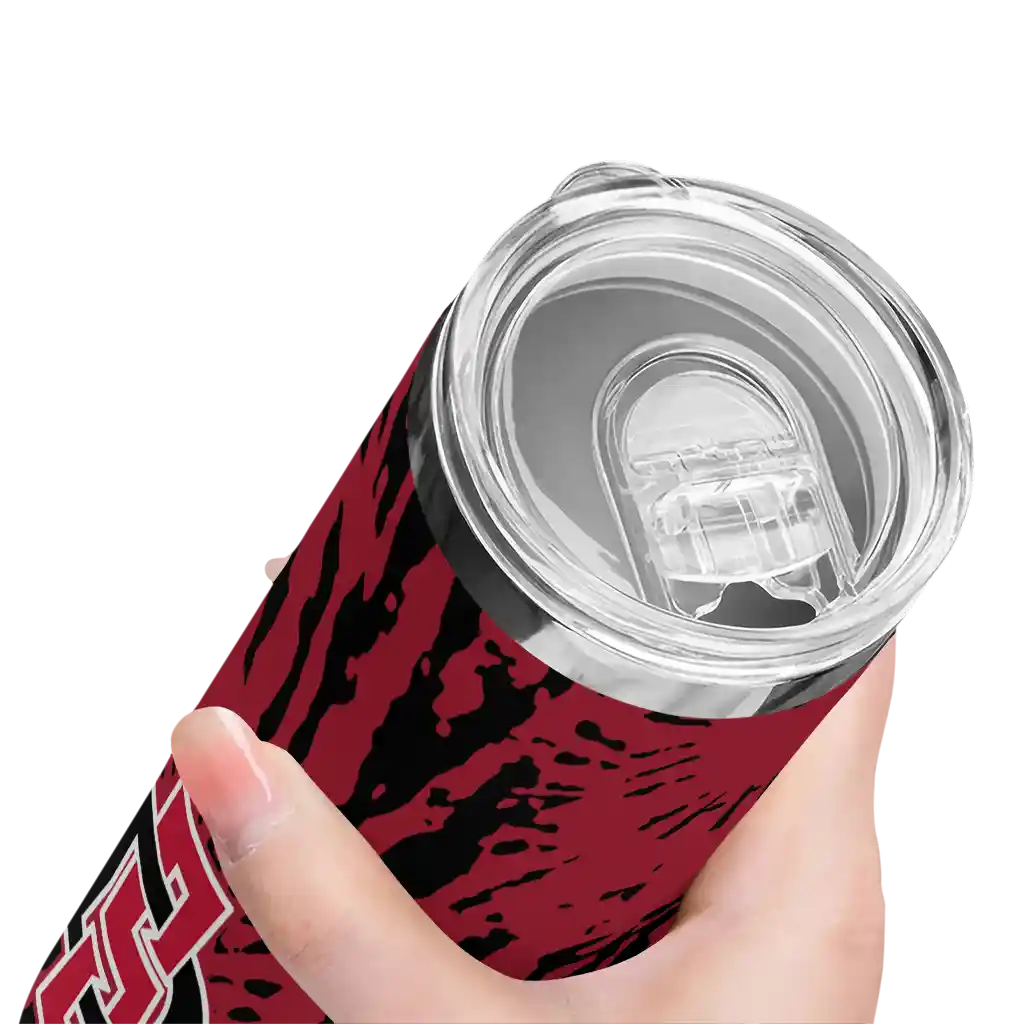 The Custom San Diego State Aztecs Patterned Waves Red Skinny Tumbler tumbler is the perfect way to stay refreshed while showing off your pride for San Diego State Aztecs. With its double-wall insulation, your drinks stay at the right temperature for hours, whether you're enjoying a hot coffee or keeping your iced drink cold. What's inside? You’ll find 1 stainless steel tumbler, 1 clear lid, and 1 removable straw. It's the perfect blend of function and fan spirit! Ergonomically designed for comfort, made from durable stainless steel, and insulated to maintain your drink’s temperature, this tumbler is a must-have for any dedicated NCAA fan.