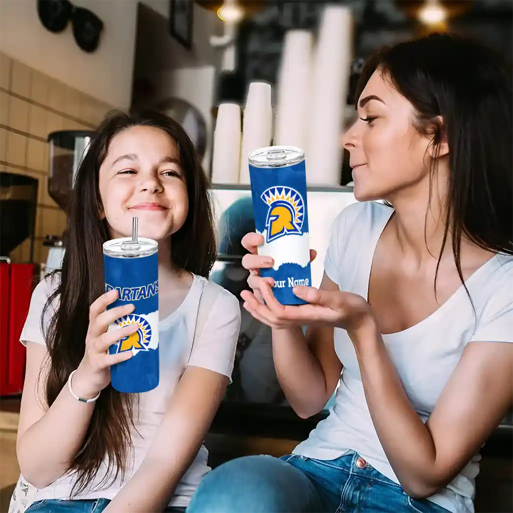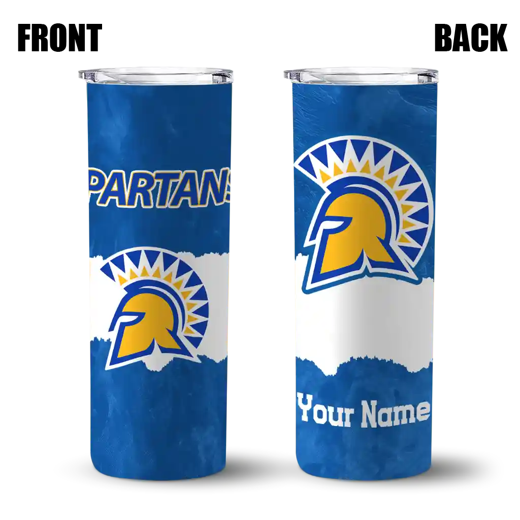The Customized San Jose State Spartans Stacked Diamond Blue Skinny Tumbler tumbler is the perfect way to stay refreshed while showing off your pride for San Jose State Spartans. With its double-wall insulation, your drinks stay at the right temperature for hours, whether you're enjoying a hot coffee or keeping your iced drink cold. What's inside? You’ll find 1 stainless steel tumbler, 1 clear lid, and 1 removable straw. It's the perfect blend of function and fan spirit! Ergonomically designed for comfort, made from durable stainless steel, and insulated to maintain your drink’s temperature, this tumbler is a must-have for any dedicated NCAA fan.