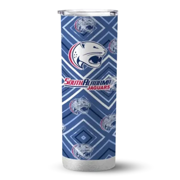 The Custom South Alabama Jaguars Web Stripes Blue White Skinny Tumbler tumbler is the perfect way to stay refreshed while showing off your pride for South Alabama Jaguars. With its double-wall insulation, your drinks stay at the right temperature for hours, whether you're enjoying a hot coffee or keeping your iced drink cold. What's inside? You’ll find 1 stainless steel tumbler, 1 clear lid, and 1 removable straw. It's the perfect blend of function and fan spirit! Ergonomically designed for comfort, made from durable stainless steel, and insulated to maintain your drink’s temperature, this tumbler is a must-have for any dedicated NCAA fan.