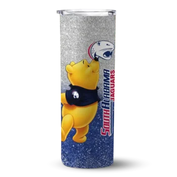 Custom South Alabama Jaguars Winnie the Pooh Blue Gray Skinny Tumbler $28.99