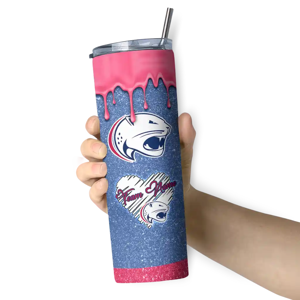 No question about it—the Customized South Alabama Jaguars Geometric Prism Blue Curved Tumbler is the ultimate way to stay refreshed while rocking your South Alabama Jaguars pride. From the stadium to your tailgate, or just chilling at home, this sleek tumbler makes sure you stay hydrated in style. What’s in the box? A stainless steel tumbler, clear lid, and removable straw—all the essentials for keeping your favorite drinks on point!