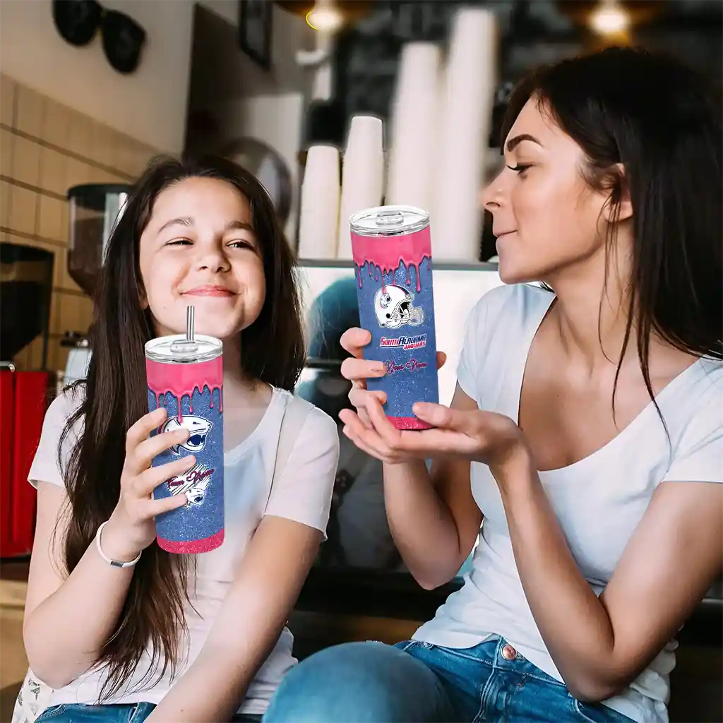 The Custom South Alabama Jaguars Web Stripes Blue White Skinny Tumbler tumbler is the perfect way to stay refreshed while showing off your pride for South Alabama Jaguars. With its double-wall insulation, your drinks stay at the right temperature for hours, whether you're enjoying a hot coffee or keeping your iced drink cold. What's inside? You’ll find 1 stainless steel tumbler, 1 clear lid, and 1 removable straw. It's the perfect blend of function and fan spirit! Ergonomically designed for comfort, made from durable stainless steel, and insulated to maintain your drink’s temperature, this tumbler is a must-have for any dedicated NCAA fan.