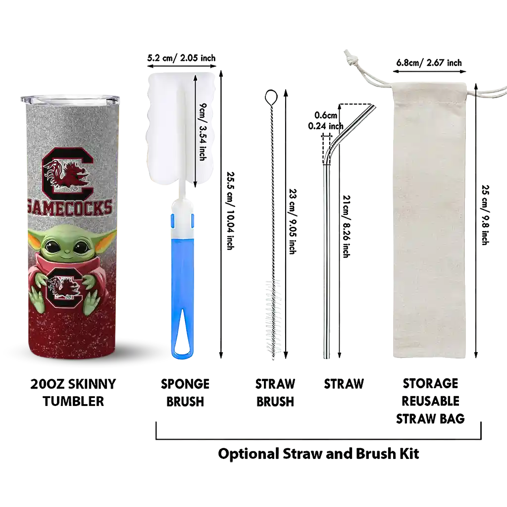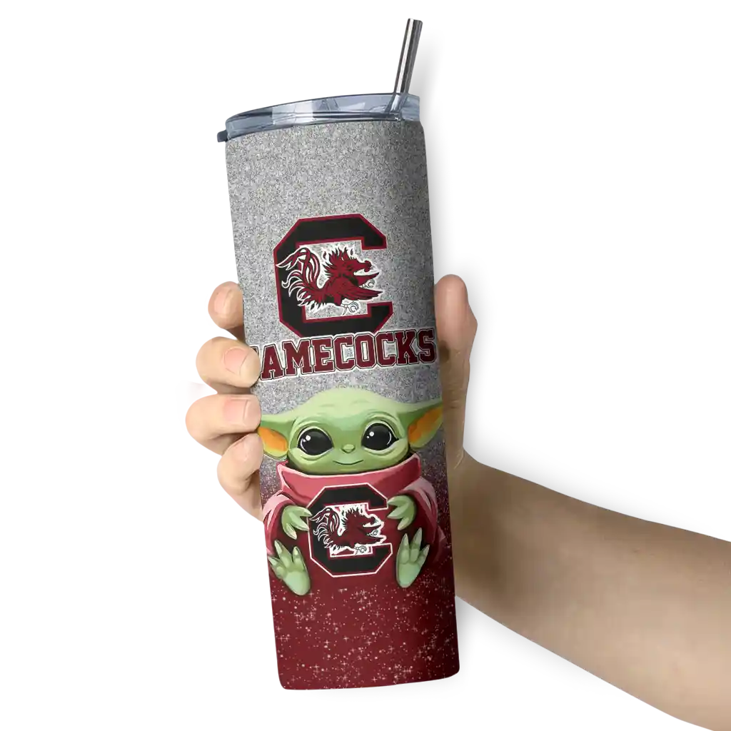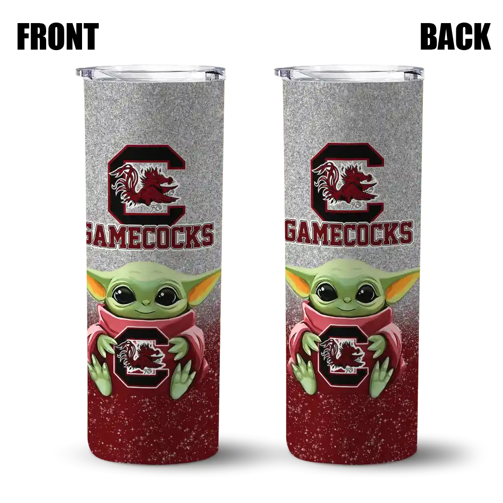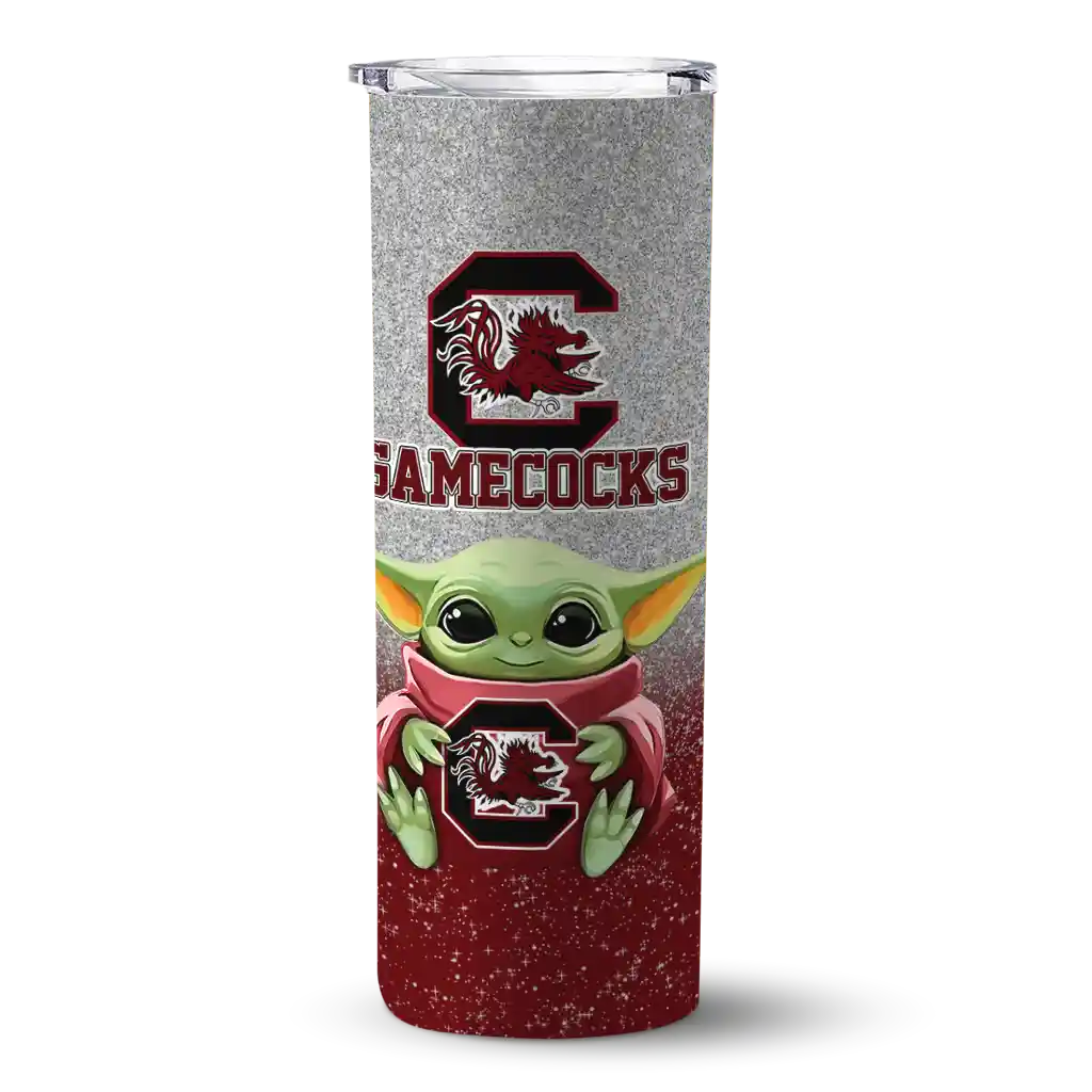 The Custom South Carolina Gamecocks Yoda Cozy Garnet Black Skinny Tumbler tumbler is the perfect way to stay refreshed while showing off your pride for South Carolina Gamecocks. With its double-wall insulation, your drinks stay at the right temperature for hours, whether you're enjoying a hot coffee or keeping your iced drink cold. What's inside? You’ll find 1 stainless steel tumbler, 1 clear lid, and 1 removable straw. It's the perfect blend of function and fan spirit! Ergonomically designed for comfort, made from durable stainless steel, and insulated to maintain your drink’s temperature, this tumbler is a must-have for any dedicated NCAA fan.