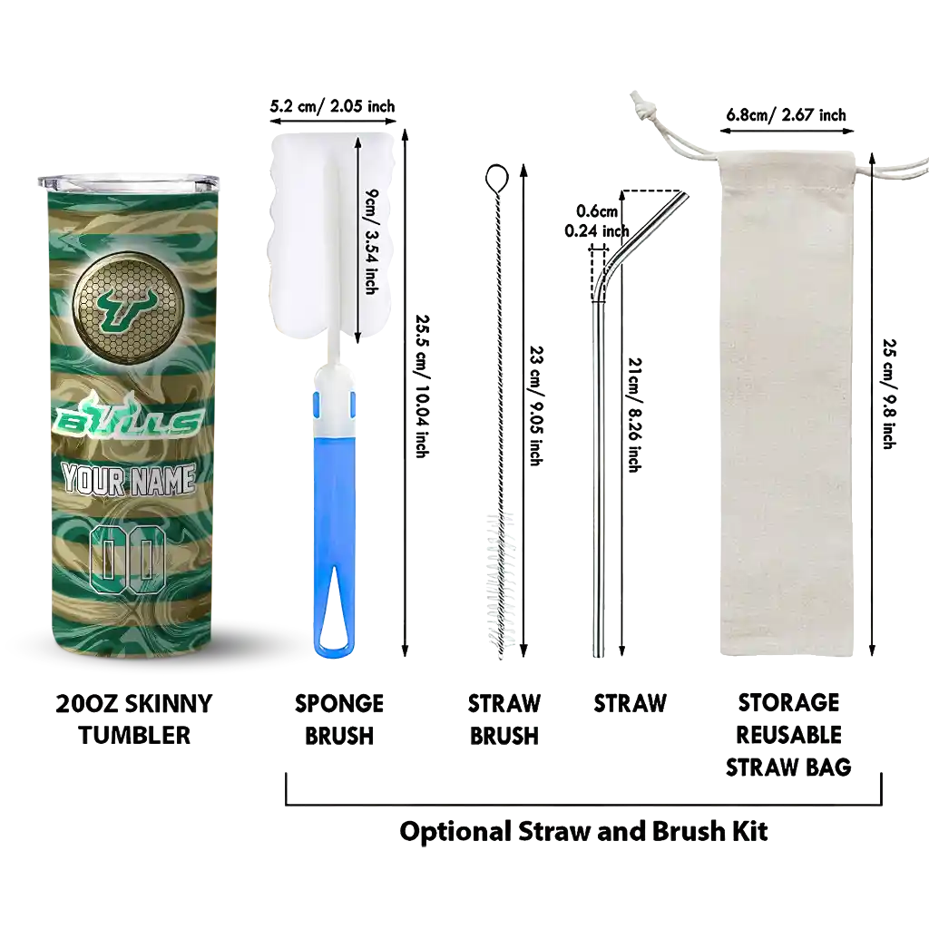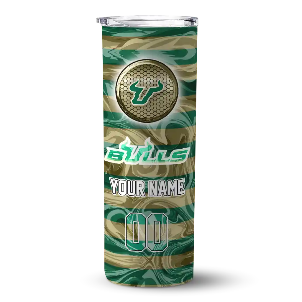 The Personalized South Florida Bulls Antler Flow Camo Skinny Tumbler tumbler is the perfect way to stay refreshed while showing off your pride for South Florida Bulls. With its double-wall insulation, your drinks stay at the right temperature for hours, whether you're enjoying a hot coffee or keeping your iced drink cold. What's inside? You’ll find 1 stainless steel tumbler, 1 clear lid, and 1 removable straw. It's the perfect blend of function and fan spirit! Ergonomically designed for comfort, made from durable stainless steel, and insulated to maintain your drink’s temperature, this tumbler is a must-have for any dedicated NCAA fan.