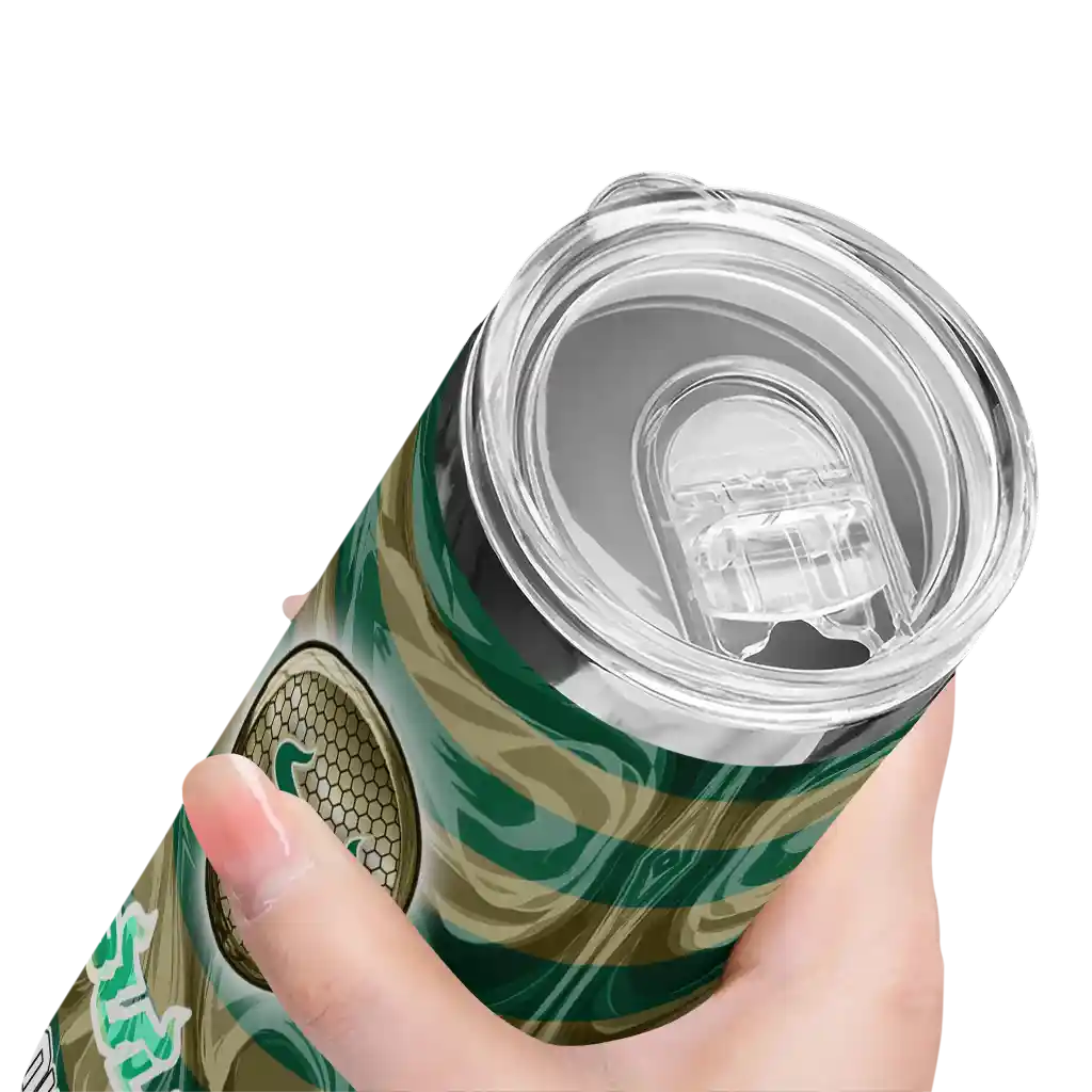 The Customized South Florida Bulls Zipper Leopard Green Skinny Tumbler tumbler is the perfect way to stay refreshed while showing off your pride for South Florida Bulls. With its double-wall insulation, your drinks stay at the right temperature for hours, whether you're enjoying a hot coffee or keeping your iced drink cold. What's inside? You’ll find 1 stainless steel tumbler, 1 clear lid, and 1 removable straw. It's the perfect blend of function and fan spirit! Ergonomically designed for comfort, made from durable stainless steel, and insulated to maintain your drink’s temperature, this tumbler is a must-have for any dedicated NCAA fan.