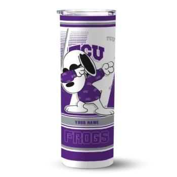 Personalized TCU Horned Frogs Snoopy Dog Purple White Skinny Tumbler $28.99