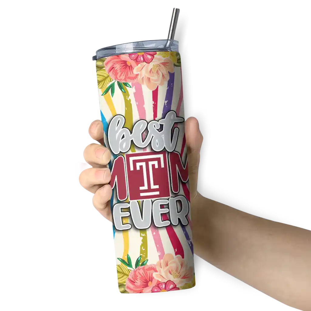 The Temple Owls Flower Cluster Skinny Tumbler tumbler is the perfect way to stay refreshed while showing off your pride for Temple Owls. With its double-wall insulation, your drinks stay at the right temperature for hours, whether you're enjoying a hot coffee or keeping your iced drink cold. What's inside? You’ll find 1 stainless steel tumbler, 1 clear lid, and 1 removable straw. It's the perfect blend of function and fan spirit! Ergonomically designed for comfort, made from durable stainless steel, and insulated to maintain your drink’s temperature, this tumbler is a must-have for any dedicated NCAA fan.