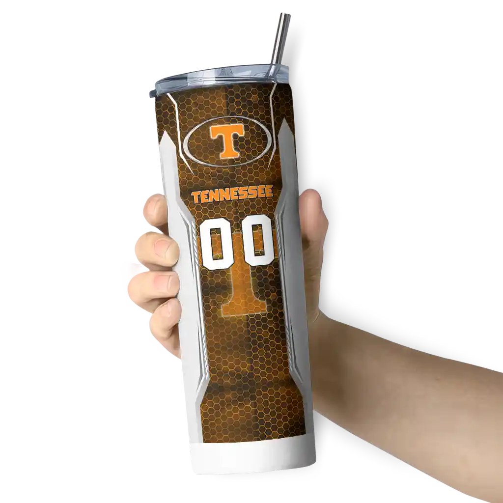 The Custom Tennessee Volunteers Helmet Clash Orange Skinny Tumbler tumbler is the perfect way to stay refreshed while showing off your pride for Tennessee Volunteers. With its double-wall insulation, your drinks stay at the right temperature for hours, whether you're enjoying a hot coffee or keeping your iced drink cold. What's inside? You’ll find 1 stainless steel tumbler, 1 clear lid, and 1 removable straw. It's the perfect blend of function and fan spirit! Ergonomically designed for comfort, made from durable stainless steel, and insulated to maintain your drink’s temperature, this tumbler is a must-have for any dedicated NCAA fan.
