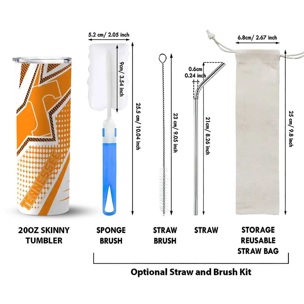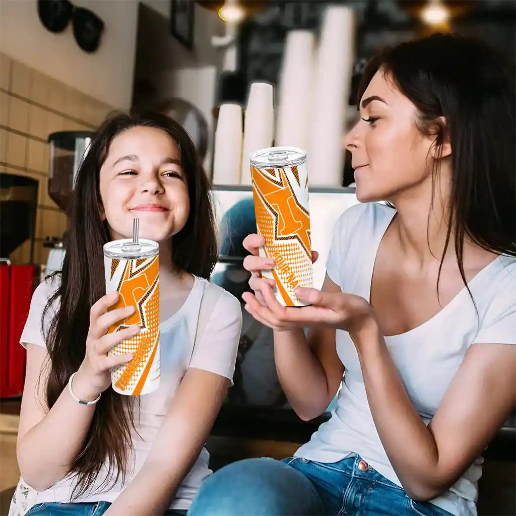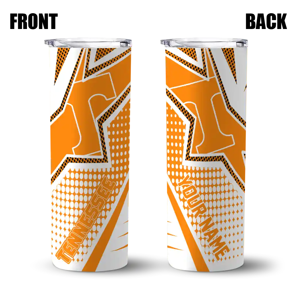 The Custom Tennessee Volunteers Web Stripes Orange White Skinny Tumbler tumbler is the perfect way to stay refreshed while showing off your pride for Tennessee Volunteers. With its double-wall insulation, your drinks stay at the right temperature for hours, whether you're enjoying a hot coffee or keeping your iced drink cold. What's inside? You’ll find 1 stainless steel tumbler, 1 clear lid, and 1 removable straw. It's the perfect blend of function and fan spirit! Ergonomically designed for comfort, made from durable stainless steel, and insulated to maintain your drink’s temperature, this tumbler is a must-have for any dedicated NCAA fan.