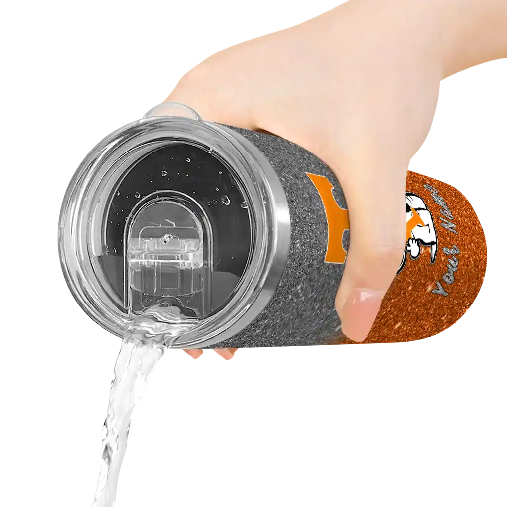 The Personalized Tennessee Volunteers Torn Band Orange White Skinny Tumbler tumbler is the perfect way to stay refreshed while showing off your pride for Tennessee Volunteers. With its double-wall insulation, your drinks stay at the right temperature for hours, whether you're enjoying a hot coffee or keeping your iced drink cold. What's inside? You’ll find 1 stainless steel tumbler, 1 clear lid, and 1 removable straw. It's the perfect blend of function and fan spirit! Ergonomically designed for comfort, made from durable stainless steel, and insulated to maintain your drink’s temperature, this tumbler is a must-have for any dedicated NCAA fan.