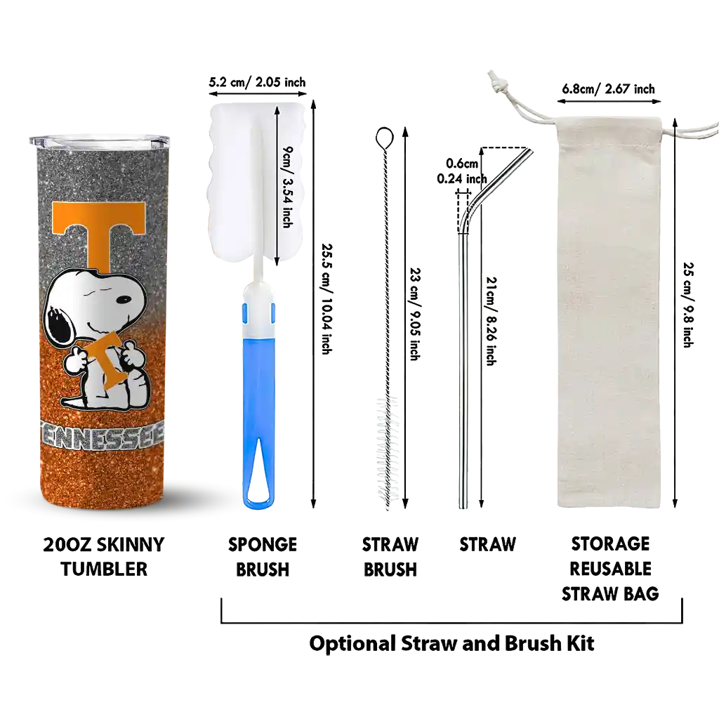 The Customized Tennessee Volunteers Snoopy Attitude Orange Skinny Tumbler tumbler is the perfect way to stay refreshed while showing off your pride for Tennessee Volunteers. With its double-wall insulation, your drinks stay at the right temperature for hours, whether you're enjoying a hot coffee or keeping your iced drink cold. What's inside? You’ll find 1 stainless steel tumbler, 1 clear lid, and 1 removable straw. It's the perfect blend of function and fan spirit! Ergonomically designed for comfort, made from durable stainless steel, and insulated to maintain your drink’s temperature, this tumbler is a must-have for any dedicated NCAA fan.