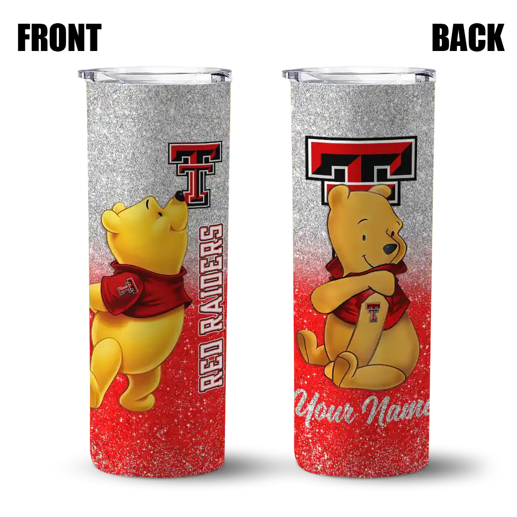 Customized Texas Tech Red Raiders Winnie the Pooh Red Gray Skinny Tumbler