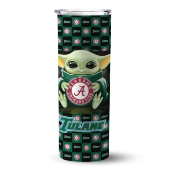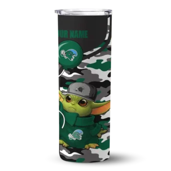 The Custom Tulane Green Wave Yoda Cozy Green Black Skinny Tumbler tumbler is the perfect way to stay refreshed while showing off your pride for Tulane Green Wave. With its double-wall insulation, your drinks stay at the right temperature for hours, whether you're enjoying a hot coffee or keeping your iced drink cold. What's inside? You’ll find 1 stainless steel tumbler, 1 clear lid, and 1 removable straw. It's the perfect blend of function and fan spirit! Ergonomically designed for comfort, made from durable stainless steel, and insulated to maintain your drink’s temperature, this tumbler is a must-have for any dedicated NCAA fan.
