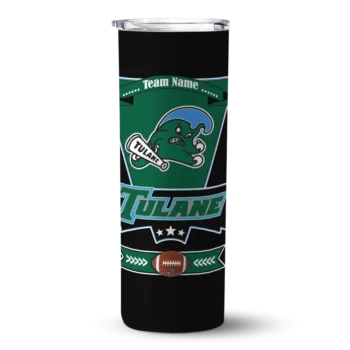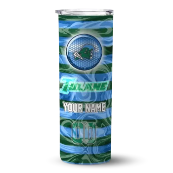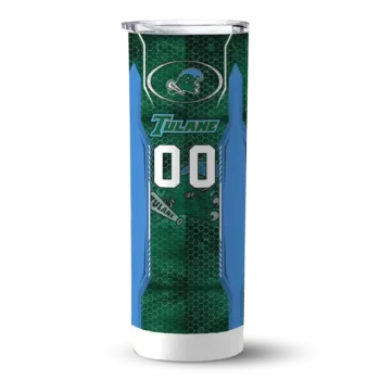 The Customized Tulane Green Wave Helmet Clash Green Skinny Tumbler tumbler is the perfect way to stay refreshed while showing off your pride for Tulane Green Wave. With its double-wall insulation, your drinks stay at the right temperature for hours, whether you're enjoying a hot coffee or keeping your iced drink cold. What's inside? You’ll find 1 stainless steel tumbler, 1 clear lid, and 1 removable straw. It's the perfect blend of function and fan spirit! Ergonomically designed for comfort, made from durable stainless steel, and insulated to maintain your drink’s temperature, this tumbler is a must-have for any dedicated NCAA fan.