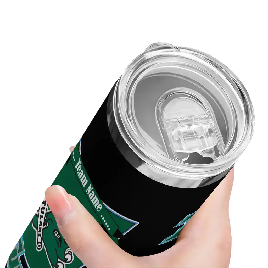 Introducing the Tulane Green Wave Tumblers from NCAA Fan Pro —where fan pride meets practical design. This slim tumbler is created for NCAA fans who want their drinks at the perfect temperature while displaying their school pride. The double-wall insulation ensures your hot beverages stay warm and your cold drinks stay chilled for hours, so you can enjoy your drinks at their best, whether you're at a game, tailgate, or on the go.