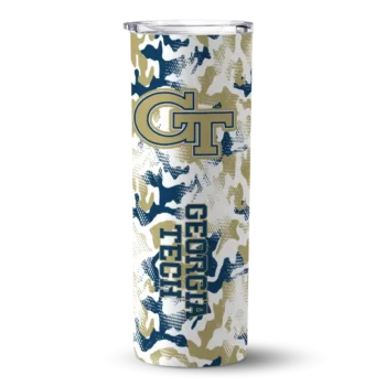 Customized Georgia Tech Yellow Camo Mashup Gold White Curved Tumbler $39.99