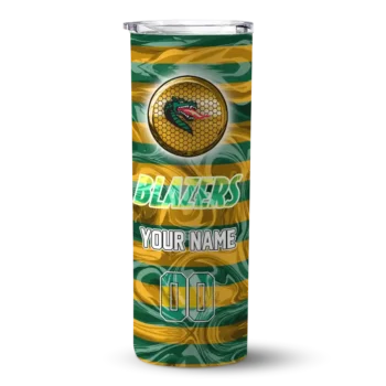 The Custom UAB Blazers Patterned Waves Green Skinny Tumbler tumbler is the perfect way to stay refreshed while showing off your pride for UAB Blazers. With its double-wall insulation, your drinks stay at the right temperature for hours, whether you're enjoying a hot coffee or keeping your iced drink cold. What's inside? You’ll find 1 stainless steel tumbler, 1 clear lid, and 1 removable straw. It's the perfect blend of function and fan spirit! Ergonomically designed for comfort, made from durable stainless steel, and insulated to maintain your drink’s temperature, this tumbler is a must-have for any dedicated NCAA fan.