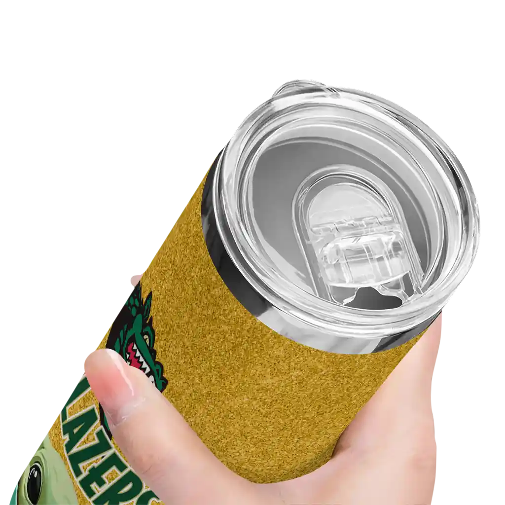 The Customized UAB Blazers Sparkle Drip Green Skinny Tumbler tumbler is the perfect way to stay refreshed while showing off your pride for UAB Blazers. With its double-wall insulation, your drinks stay at the right temperature for hours, whether you're enjoying a hot coffee or keeping your iced drink cold. What's inside? You’ll find 1 stainless steel tumbler, 1 clear lid, and 1 removable straw. It's the perfect blend of function and fan spirit! Ergonomically designed for comfort, made from durable stainless steel, and insulated to maintain your drink’s temperature, this tumbler is a must-have for any dedicated NCAA fan.