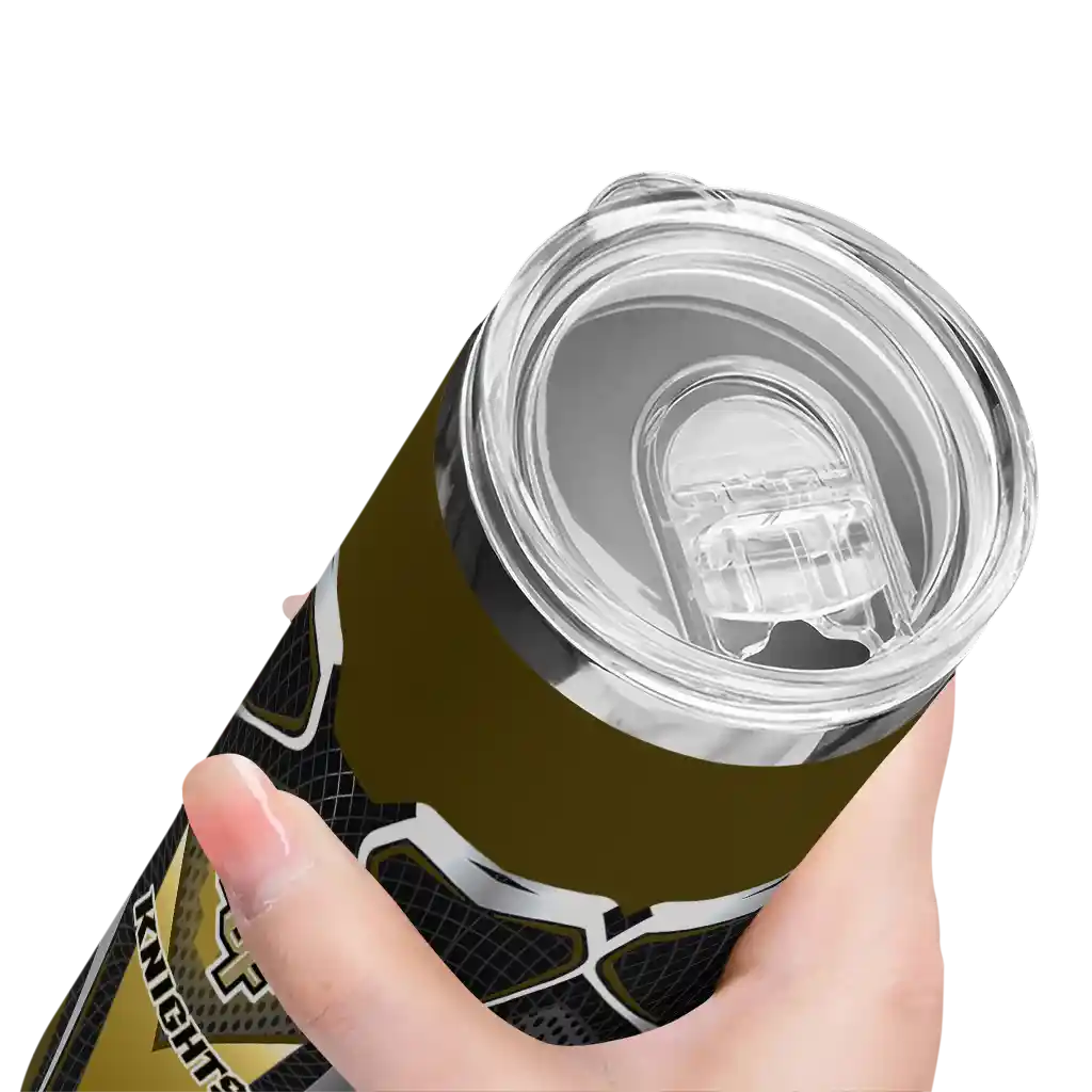 The Customized UCF Knights Superman Emblem Gold Black Skinny Tumbler tumbler is the perfect way to stay refreshed while showing off your pride for UCF Knights. With its double-wall insulation, your drinks stay at the right temperature for hours, whether you're enjoying a hot coffee or keeping your iced drink cold. What's inside? You’ll find 1 stainless steel tumbler, 1 clear lid, and 1 removable straw. It's the perfect blend of function and fan spirit! Ergonomically designed for comfort, made from durable stainless steel, and insulated to maintain your drink’s temperature, this tumbler is a must-have for any dedicated NCAA fan.