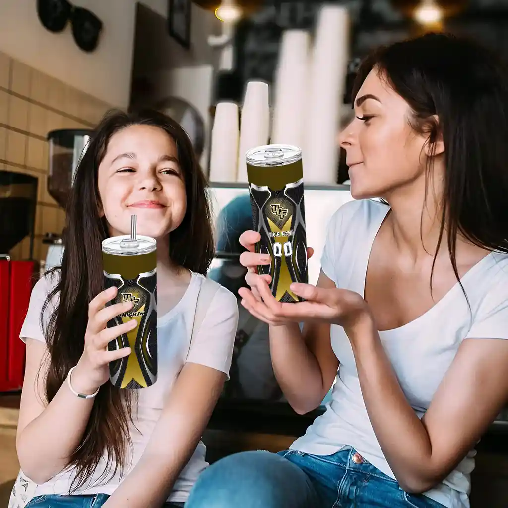 No question about it—the Customized UCF Knights Heart Helmet Motif Gold Curved Tumbler is the ultimate way to stay refreshed while rocking your UCF Knights pride. From the stadium to your tailgate, or just chilling at home, this sleek tumbler makes sure you stay hydrated in style. What’s in the box? A stainless steel tumbler, clear lid, and removable straw—all the essentials for keeping your favorite drinks on point!