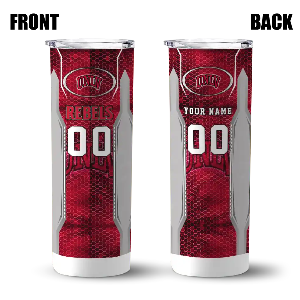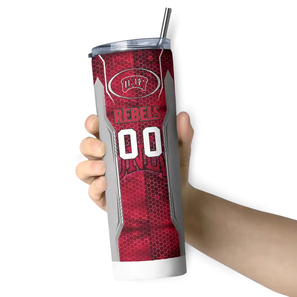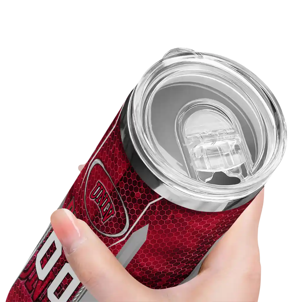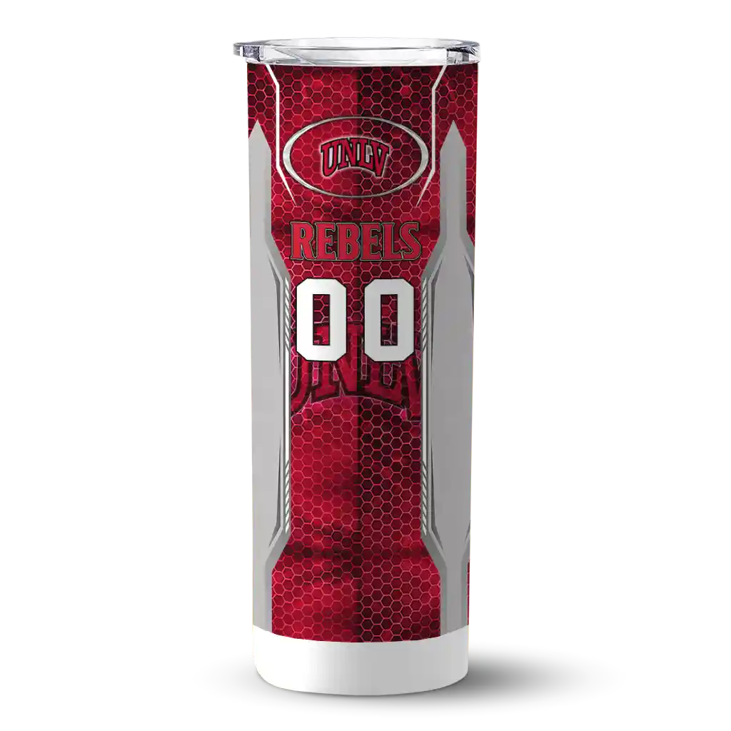 The Custom UNLV Rebels Hexagon Honeycomb Red Black Skinny Tumbler tumbler is the perfect way to stay refreshed while showing off your pride for UNLV Rebels. With its double-wall insulation, your drinks stay at the right temperature for hours, whether you're enjoying a hot coffee or keeping your iced drink cold. What's inside? You’ll find 1 stainless steel tumbler, 1 clear lid, and 1 removable straw. It's the perfect blend of function and fan spirit! Ergonomically designed for comfort, made from durable stainless steel, and insulated to maintain your drink’s temperature, this tumbler is a must-have for any dedicated NCAA fan.