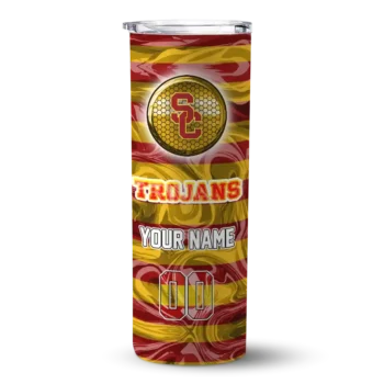 The Customized USC Trojans Swirl Texture Red Skinny Tumbler tumbler is the perfect way to stay refreshed while showing off your pride for USC Trojans. With its double-wall insulation, your drinks stay at the right temperature for hours, whether you're enjoying a hot coffee or keeping your iced drink cold. What's inside? You’ll find 1 stainless steel tumbler, 1 clear lid, and 1 removable straw. It's the perfect blend of function and fan spirit! Ergonomically designed for comfort, made from durable stainless steel, and insulated to maintain your drink’s temperature, this tumbler is a must-have for any dedicated NCAA fan.