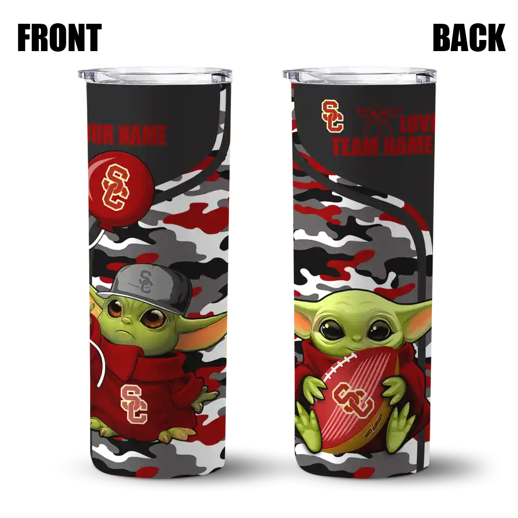 Customized USC Trojans Yoda Camo Red Black Skinny Tumbler