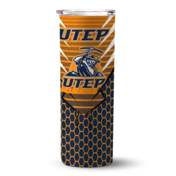 The Customized UTEP Miners Hexagon Honeycomb Blue Black Skinny Tumbler tumbler is the perfect way to stay refreshed while showing off your pride for UTEP Miners. With its double-wall insulation, your drinks stay at the right temperature for hours, whether you're enjoying a hot coffee or keeping your iced drink cold. What's inside? You’ll find 1 stainless steel tumbler, 1 clear lid, and 1 removable straw. It's the perfect blend of function and fan spirit! Ergonomically designed for comfort, made from durable stainless steel, and insulated to maintain your drink’s temperature, this tumbler is a must-have for any dedicated NCAA fan.
