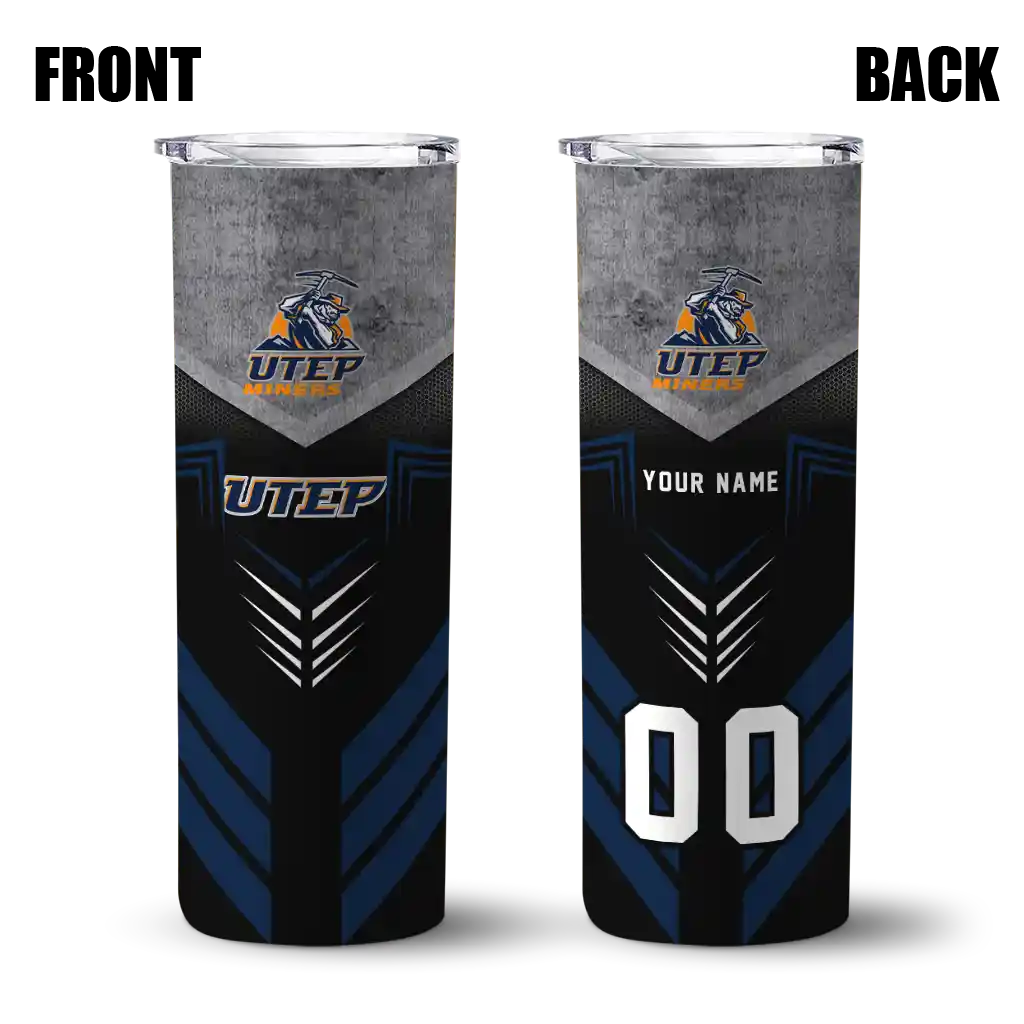 Customized UTEP Miners Hexagon Honeycomb Blue Black Skinny Tumbler