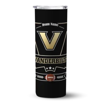 The Custom Vanderbilt Commodores Helmet Belt Black Skinny Tumbler tumbler is the perfect way to stay refreshed while showing off your pride for Vanderbilt Commodores. With its double-wall insulation, your drinks stay at the right temperature for hours, whether you're enjoying a hot coffee or keeping your iced drink cold. What's inside? You’ll find 1 stainless steel tumbler, 1 clear lid, and 1 removable straw. It's the perfect blend of function and fan spirit! Ergonomically designed for comfort, made from durable stainless steel, and insulated to maintain your drink’s temperature, this tumbler is a must-have for any dedicated NCAA fan.