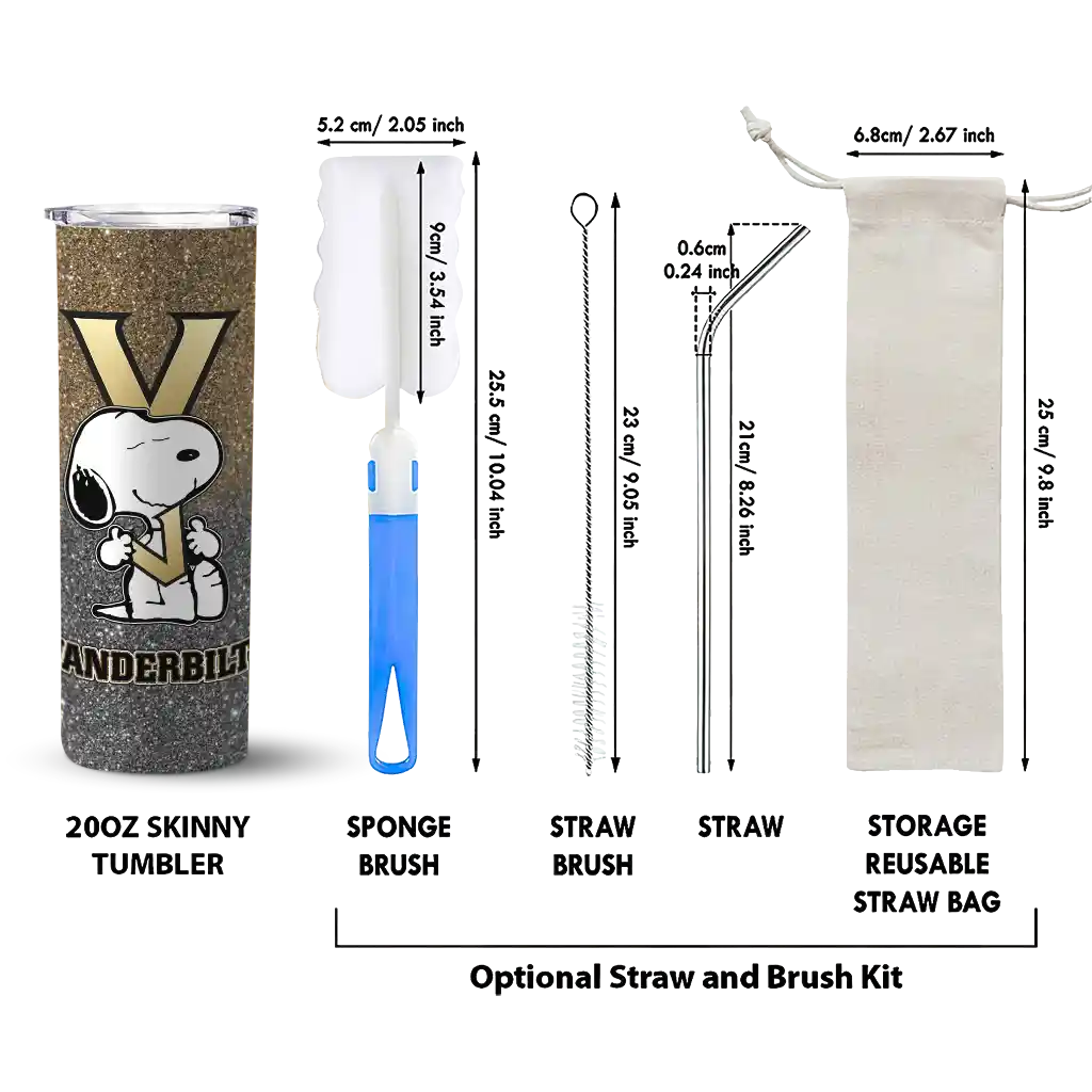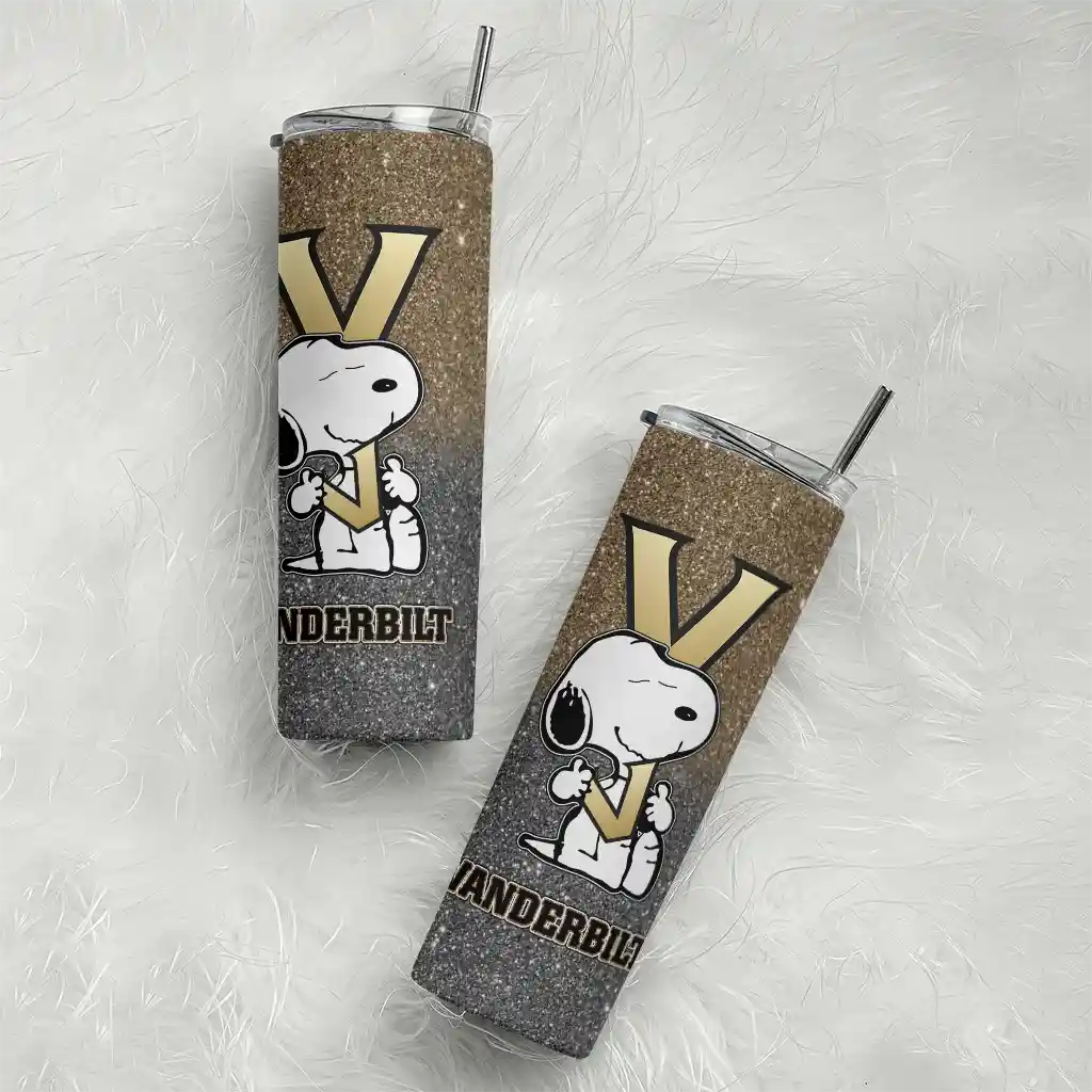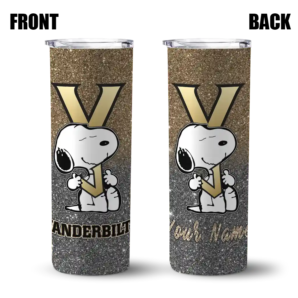 The Custom Vanderbilt Commodores Snoopy Attitude Black Skinny Tumbler tumbler is the perfect way to stay refreshed while showing off your pride for Vanderbilt Commodores. With its double-wall insulation, your drinks stay at the right temperature for hours, whether you're enjoying a hot coffee or keeping your iced drink cold. What's inside? You’ll find 1 stainless steel tumbler, 1 clear lid, and 1 removable straw. It's the perfect blend of function and fan spirit! Ergonomically designed for comfort, made from durable stainless steel, and insulated to maintain your drink’s temperature, this tumbler is a must-have for any dedicated NCAA fan.