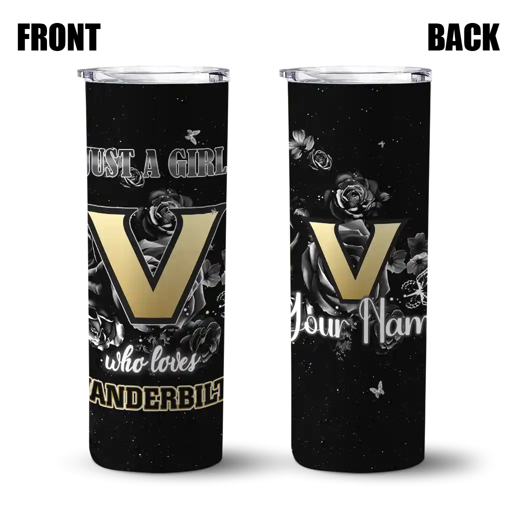 Customized Vanderbilt Commodores Rose Romance Black Skinny Tumbler