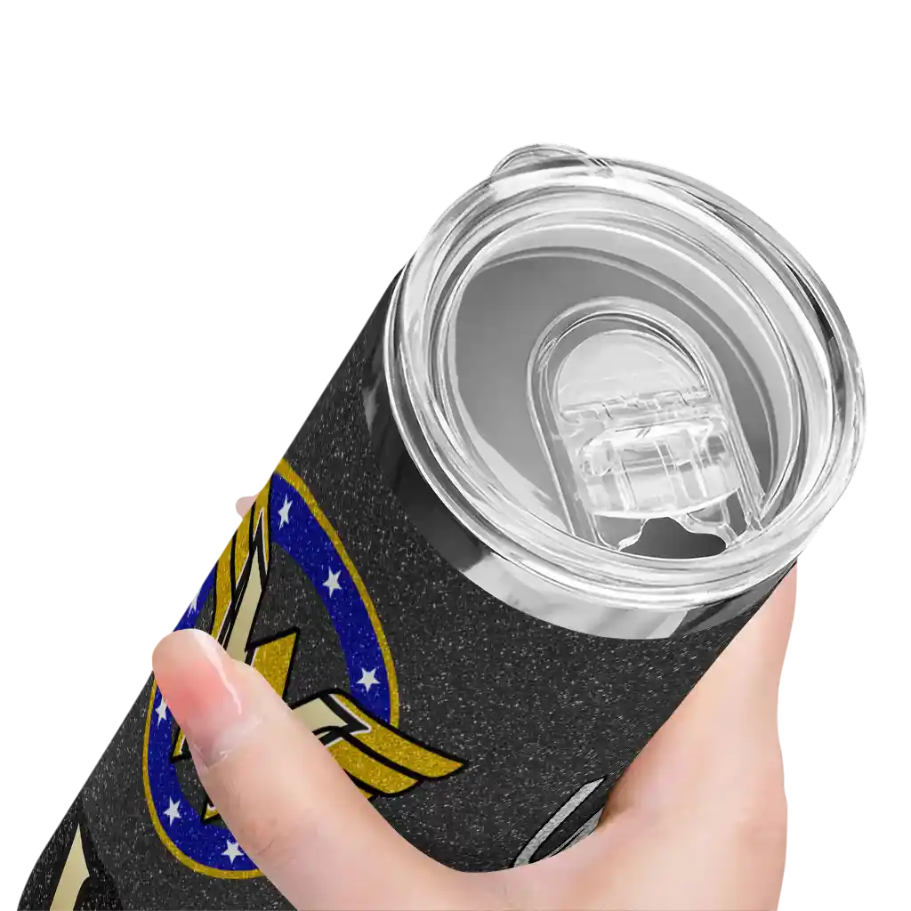 The Custom Vanderbilt Commodores Helmet Belt Black Skinny Tumbler tumbler is the perfect way to stay refreshed while showing off your pride for Vanderbilt Commodores. With its double-wall insulation, your drinks stay at the right temperature for hours, whether you're enjoying a hot coffee or keeping your iced drink cold. What's inside? You’ll find 1 stainless steel tumbler, 1 clear lid, and 1 removable straw. It's the perfect blend of function and fan spirit! Ergonomically designed for comfort, made from durable stainless steel, and insulated to maintain your drink’s temperature, this tumbler is a must-have for any dedicated NCAA fan.