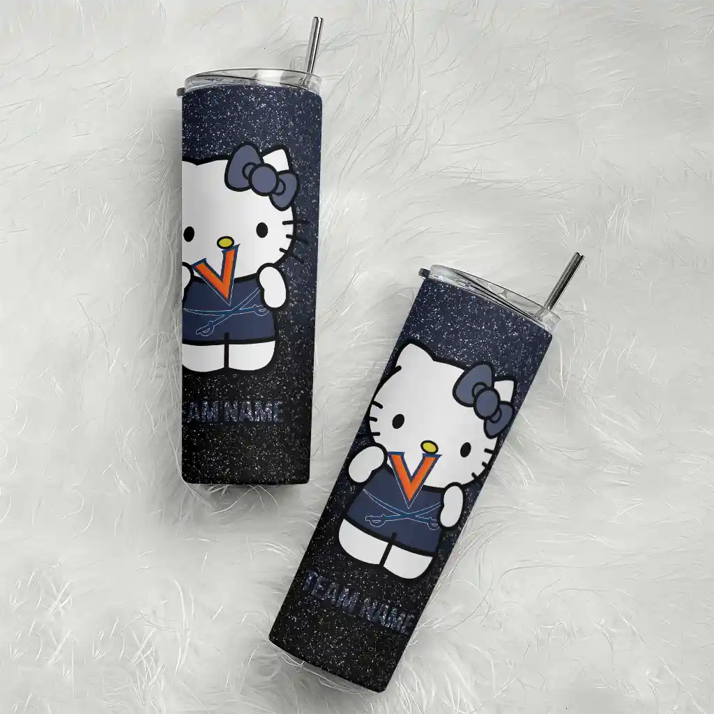 Custom Virginia Cavaliers Hello Kitty Blue Black Skinny Tumbler