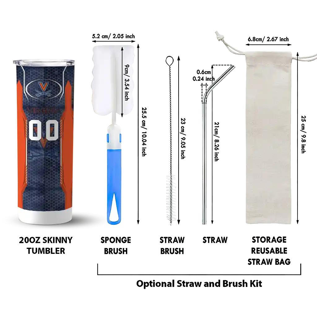 The Customized Virginia Cavaliers Stacked Diamond Blue Skinny Tumbler tumbler is the perfect way to stay refreshed while showing off your pride for Virginia Cavaliers. With its double-wall insulation, your drinks stay at the right temperature for hours, whether you're enjoying a hot coffee or keeping your iced drink cold. What's inside? You’ll find 1 stainless steel tumbler, 1 clear lid, and 1 removable straw. It's the perfect blend of function and fan spirit! Ergonomically designed for comfort, made from durable stainless steel, and insulated to maintain your drink’s temperature, this tumbler is a must-have for any dedicated NCAA fan.