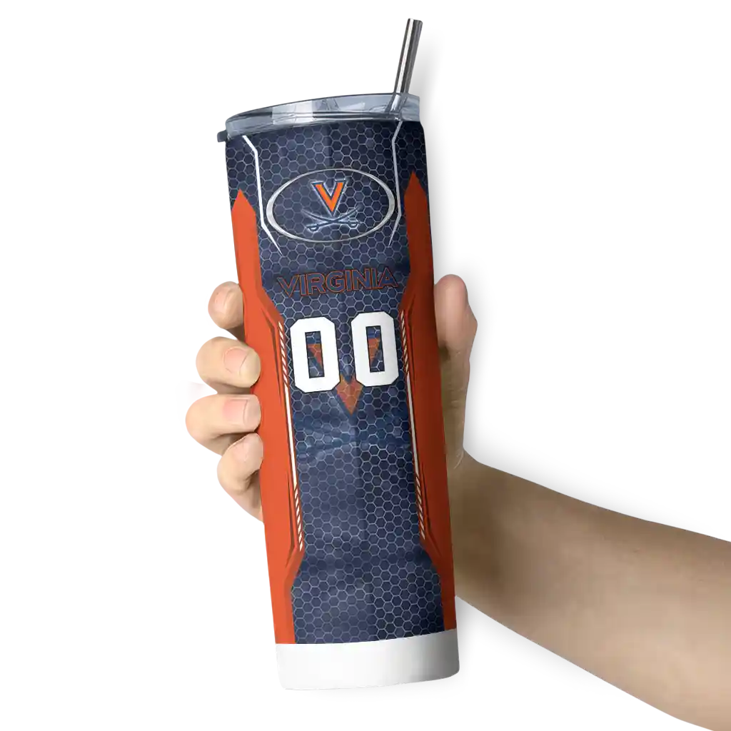 No question about it—the Customized Virginia Cavaliers Hex Texture Blue Curved Tumbler is the ultimate way to stay refreshed while rocking your Virginia Cavaliers pride. From the stadium to your tailgate, or just chilling at home, this sleek tumbler makes sure you stay hydrated in style. What’s in the box? A stainless steel tumbler, clear lid, and removable straw—all the essentials for keeping your favorite drinks on point!