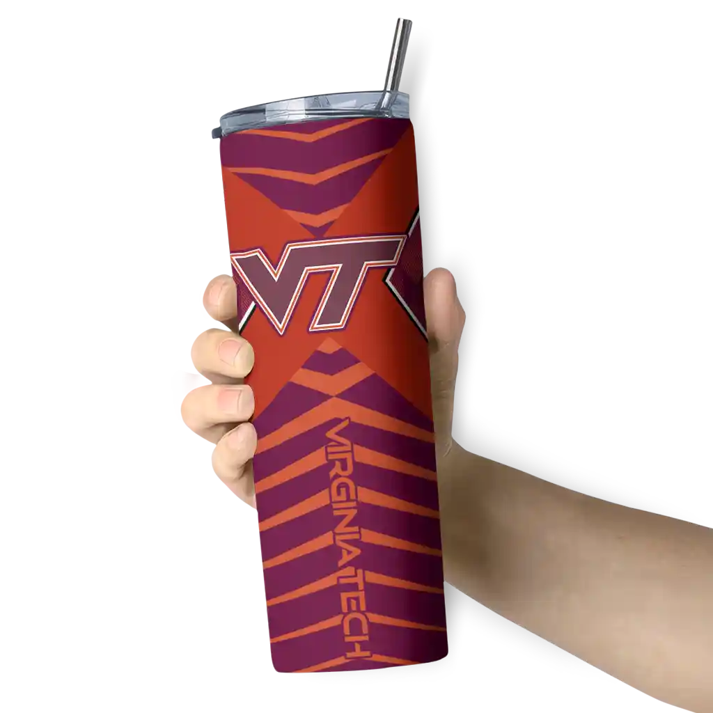 The Customized Virginia Tech Hokies Chevron V Maroon Gray Skinny Tumbler tumbler is the perfect way to stay refreshed while showing off your pride for Virginia Tech Hokies. With its double-wall insulation, your drinks stay at the right temperature for hours, whether you're enjoying a hot coffee or keeping your iced drink cold. What's inside? You’ll find 1 stainless steel tumbler, 1 clear lid, and 1 removable straw. It's the perfect blend of function and fan spirit! Ergonomically designed for comfort, made from durable stainless steel, and insulated to maintain your drink’s temperature, this tumbler is a must-have for any dedicated NCAA fan.