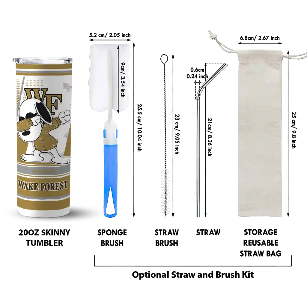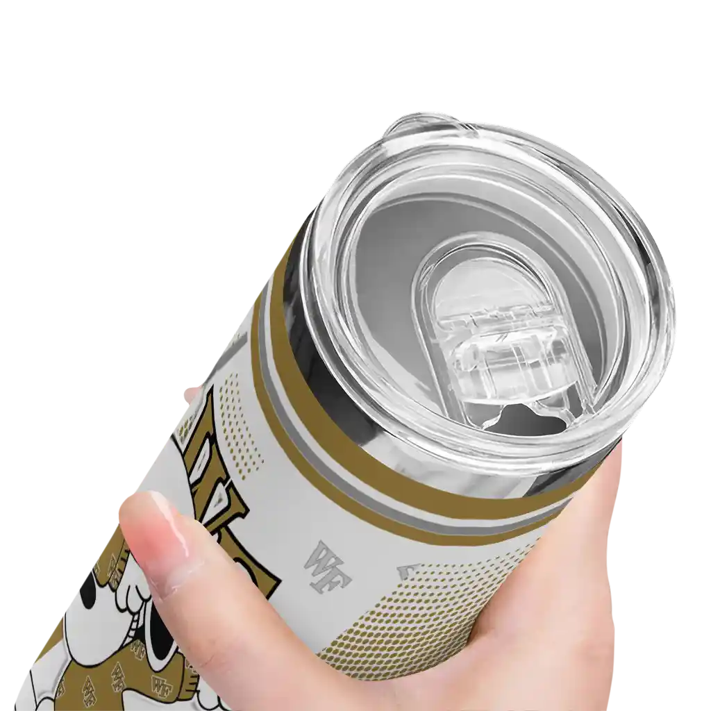 The Customized Wake Forest Demon Deacons Snoopy Dog Gold White Skinny Tumbler tumbler is the perfect way to stay refreshed while showing off your pride for Wake Forest Demon Deacons. With its double-wall insulation, your drinks stay at the right temperature for hours, whether you're enjoying a hot coffee or keeping your iced drink cold. What's inside? You’ll find 1 stainless steel tumbler, 1 clear lid, and 1 removable straw. It's the perfect blend of function and fan spirit! Ergonomically designed for comfort, made from durable stainless steel, and insulated to maintain your drink’s temperature, this tumbler is a must-have for any dedicated NCAA fan.