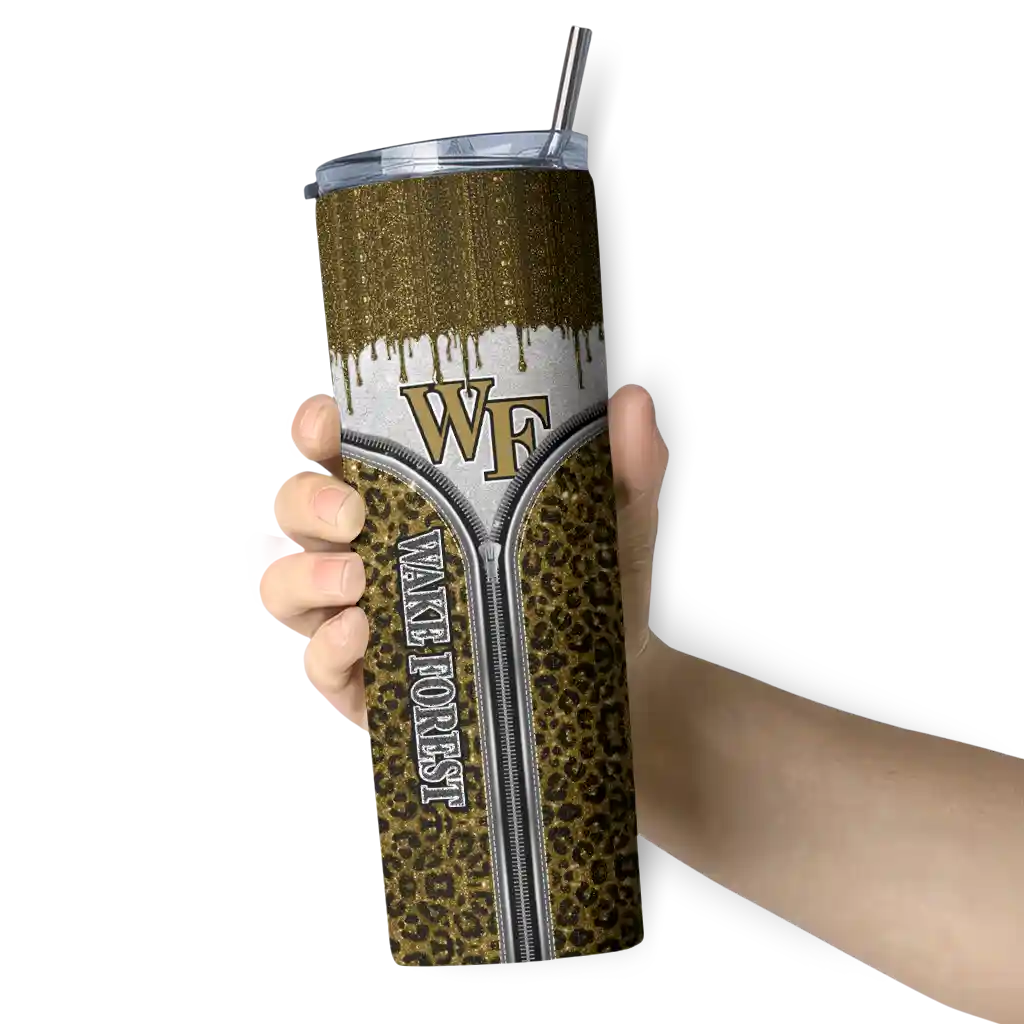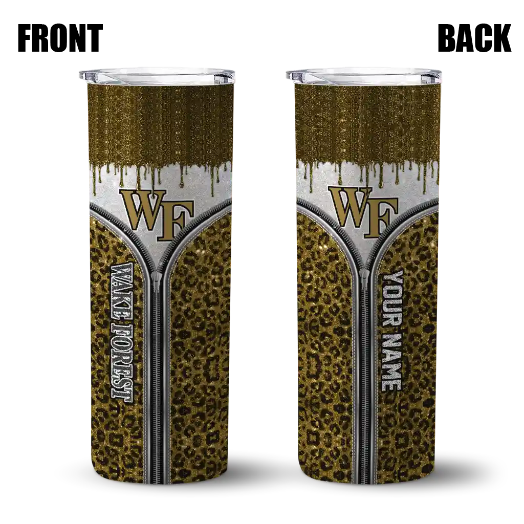 Customized Wake Forest Demon Deacons Sparkle Drip Gold Skinny Tumbler
