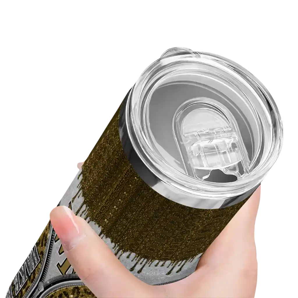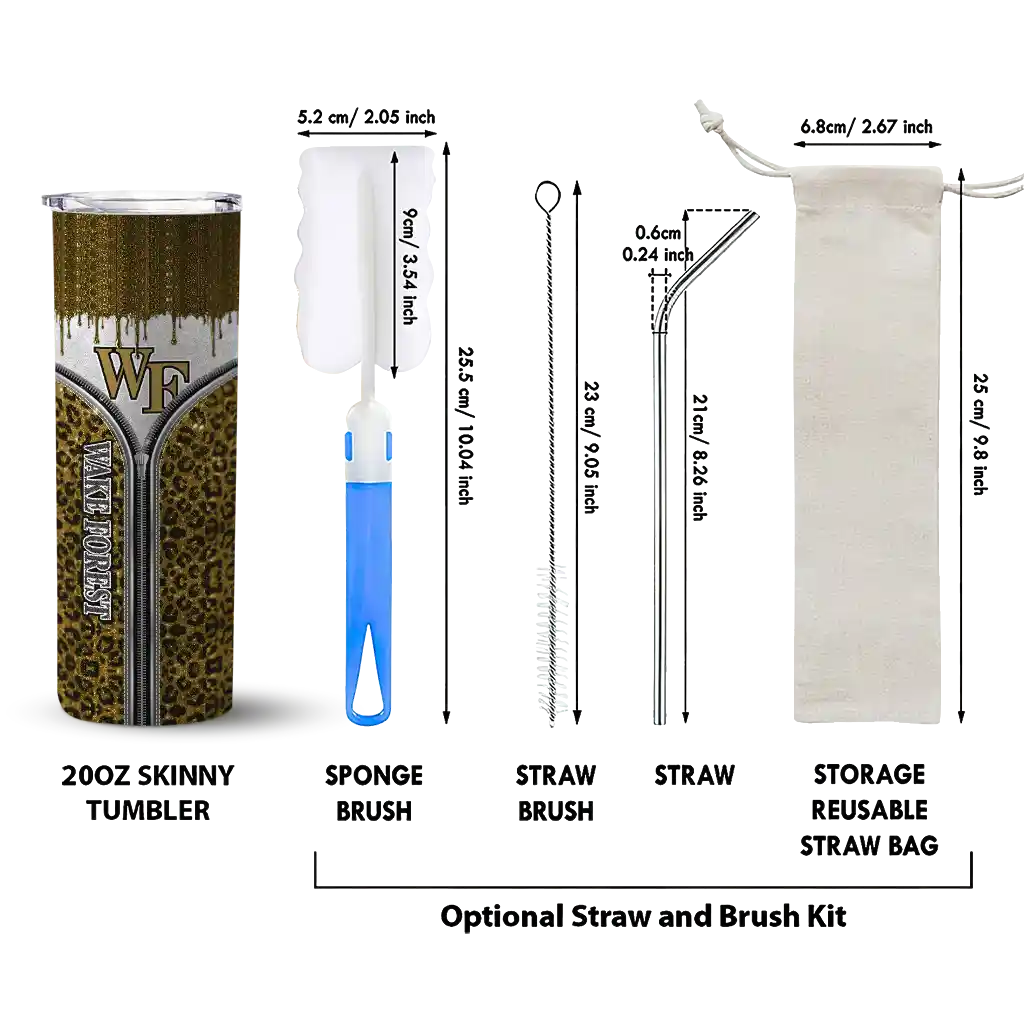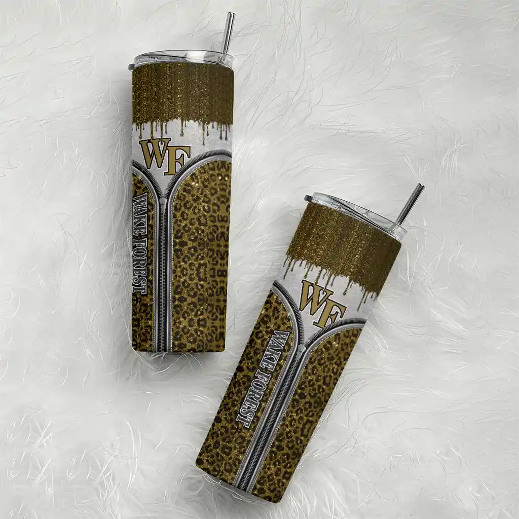 The Customized Wake Forest Demon Deacons Sparkle Drip Gold Skinny Tumbler tumbler is the perfect way to stay refreshed while showing off your pride for Wake Forest Demon Deacons. With its double-wall insulation, your drinks stay at the right temperature for hours, whether you're enjoying a hot coffee or keeping your iced drink cold. What's inside? You’ll find 1 stainless steel tumbler, 1 clear lid, and 1 removable straw. It's the perfect blend of function and fan spirit! Ergonomically designed for comfort, made from durable stainless steel, and insulated to maintain your drink’s temperature, this tumbler is a must-have for any dedicated NCAA fan.