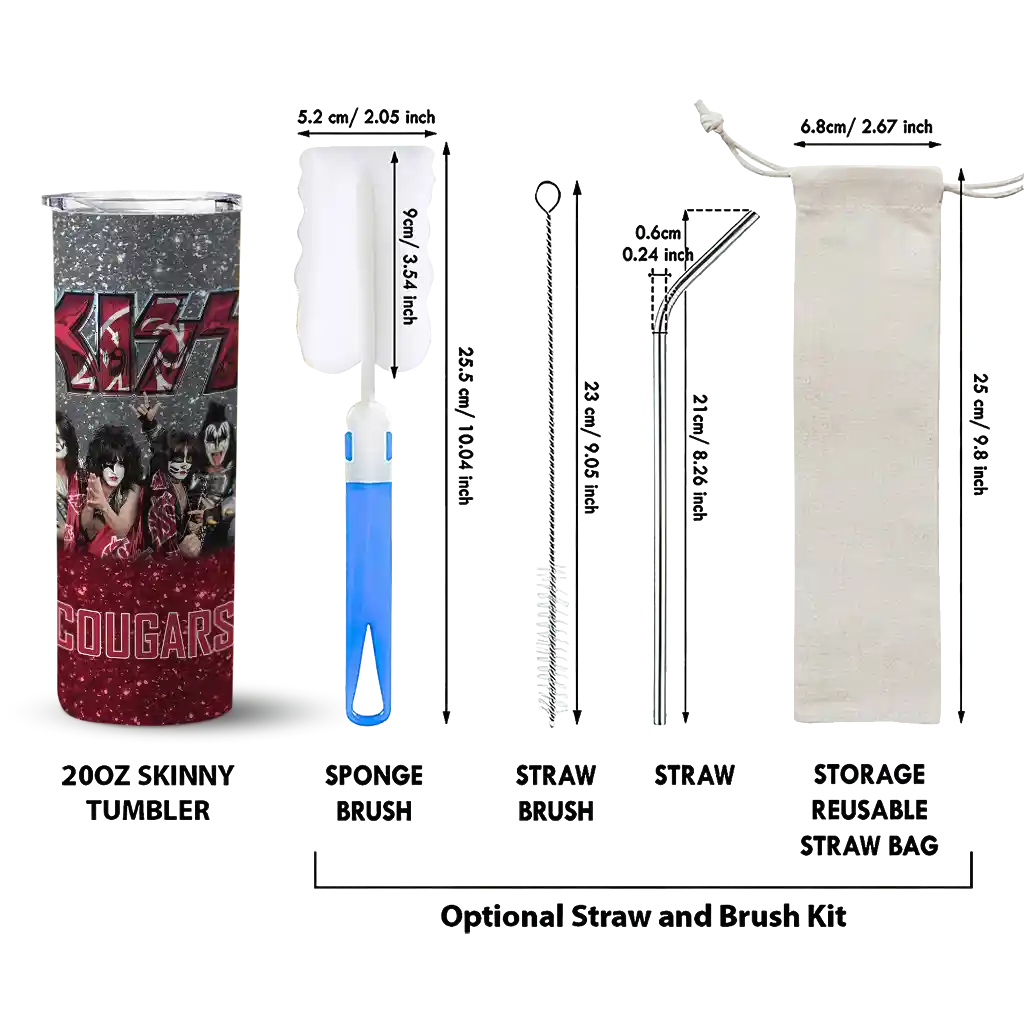The Personalized Washington State Cougars Kiss Band Grey Skinny Tumbler tumbler is the perfect way to stay refreshed while showing off your pride for Washington State Cougars. With its double-wall insulation, your drinks stay at the right temperature for hours, whether you're enjoying a hot coffee or keeping your iced drink cold. What's inside? You’ll find 1 stainless steel tumbler, 1 clear lid, and 1 removable straw. It's the perfect blend of function and fan spirit! Ergonomically designed for comfort, made from durable stainless steel, and insulated to maintain your drink’s temperature, this tumbler is a must-have for any dedicated NCAA fan.