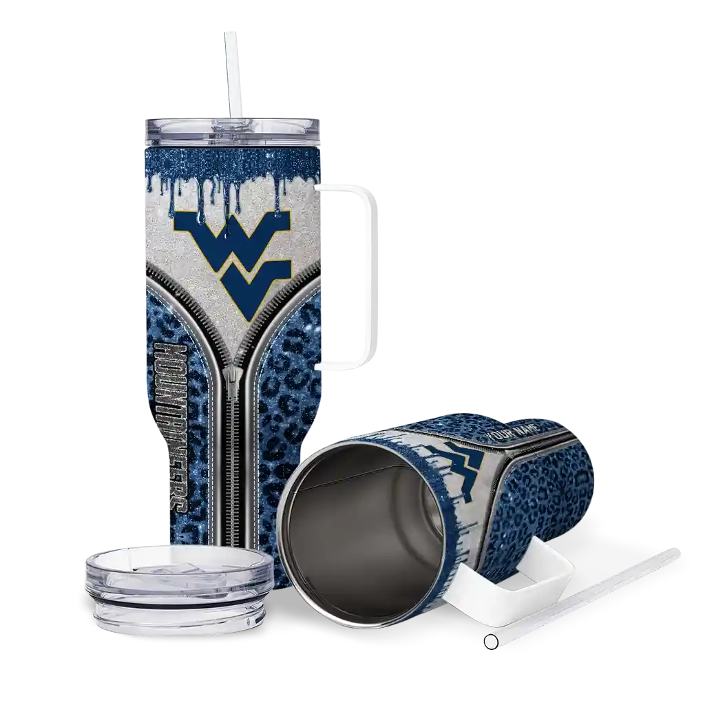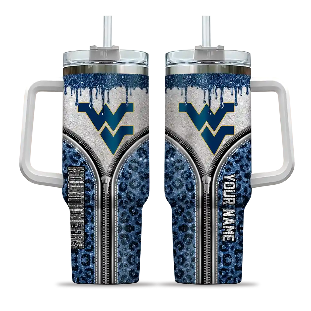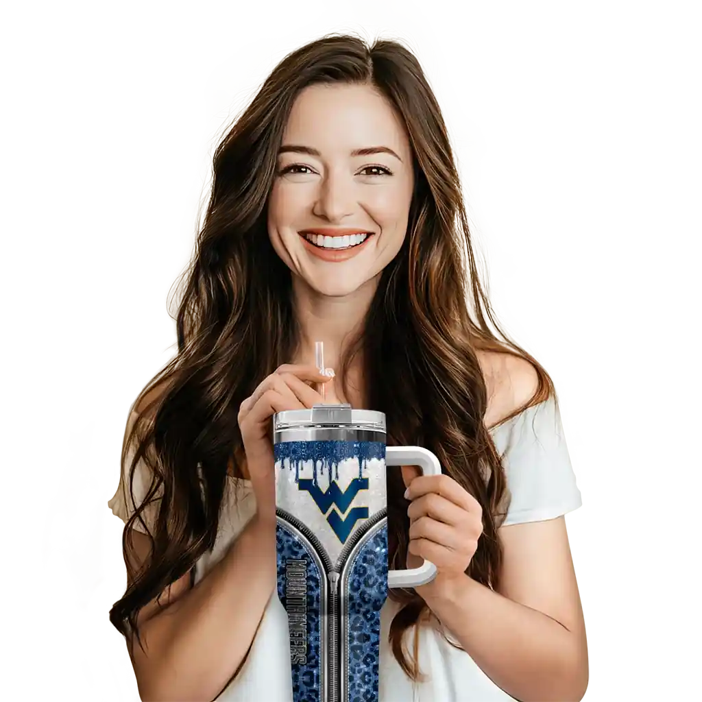 Customized West Virginia Mountaineers Leopard Zipper Blue Curved Tumbler