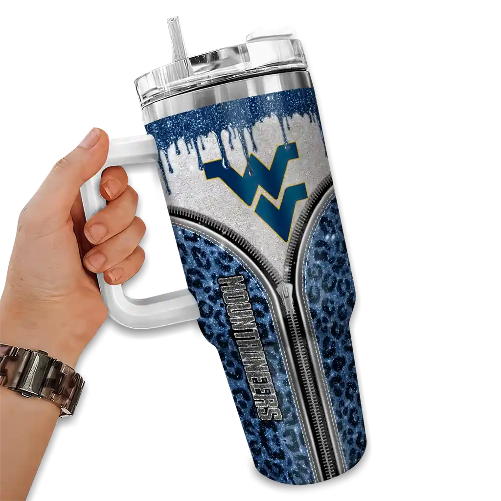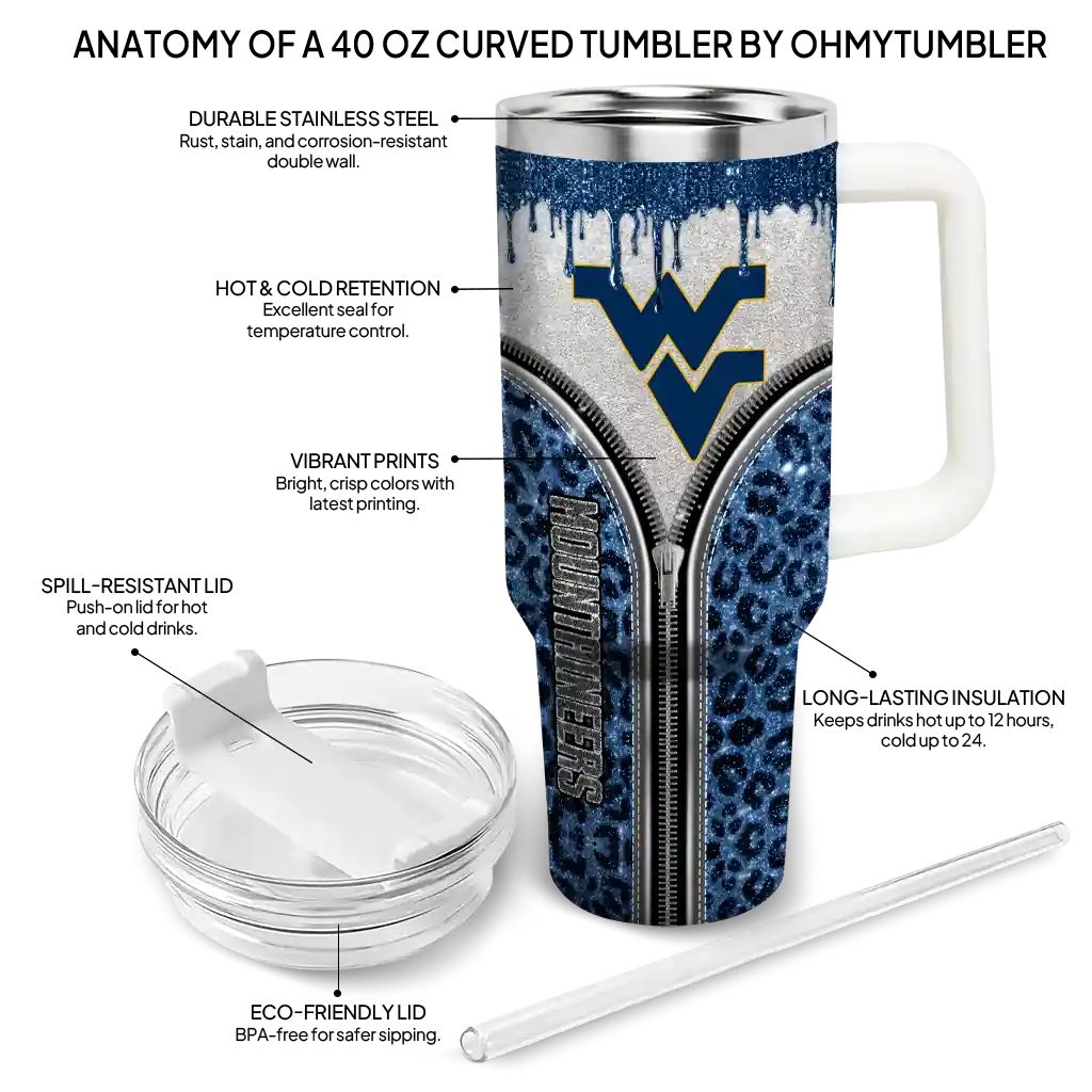 customized west virginia mountaineers leopard zipper blue curved tumbler best selling.webp